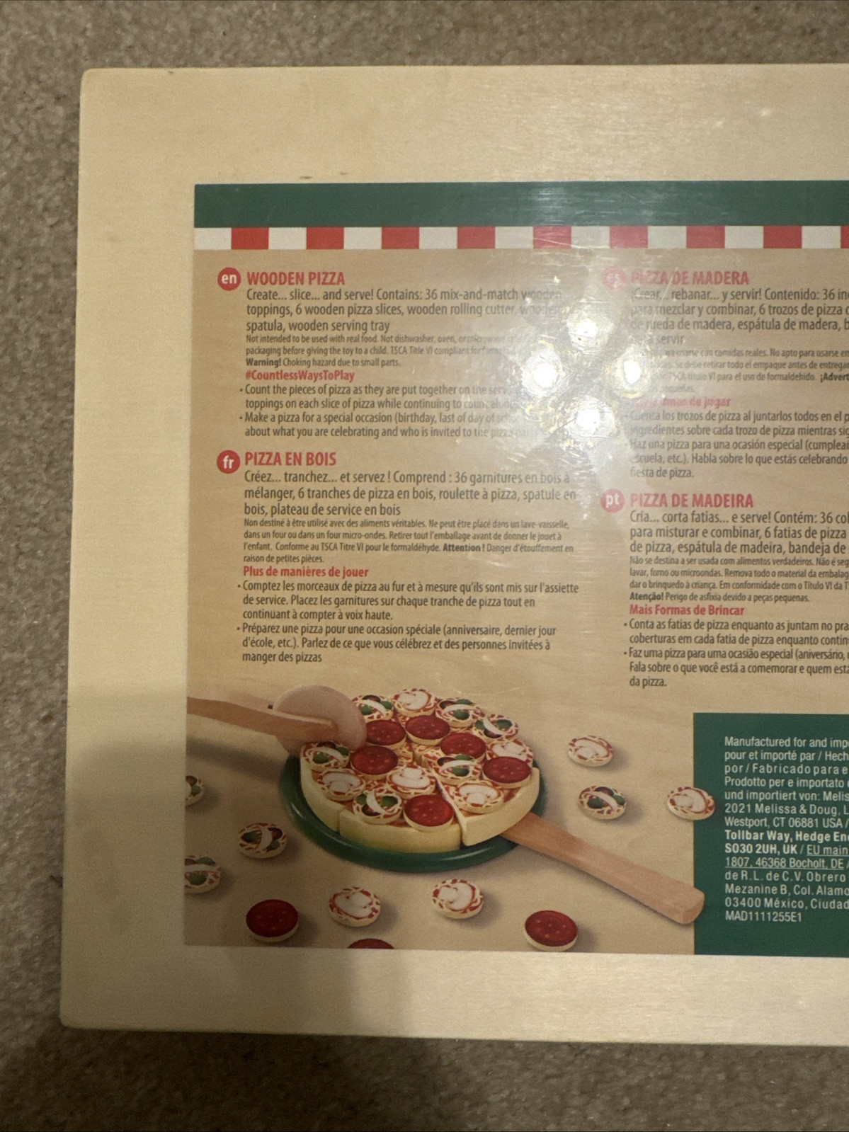 Melissa Doug Wooden Pizza Play Food Slice Decorate 36 Toppings