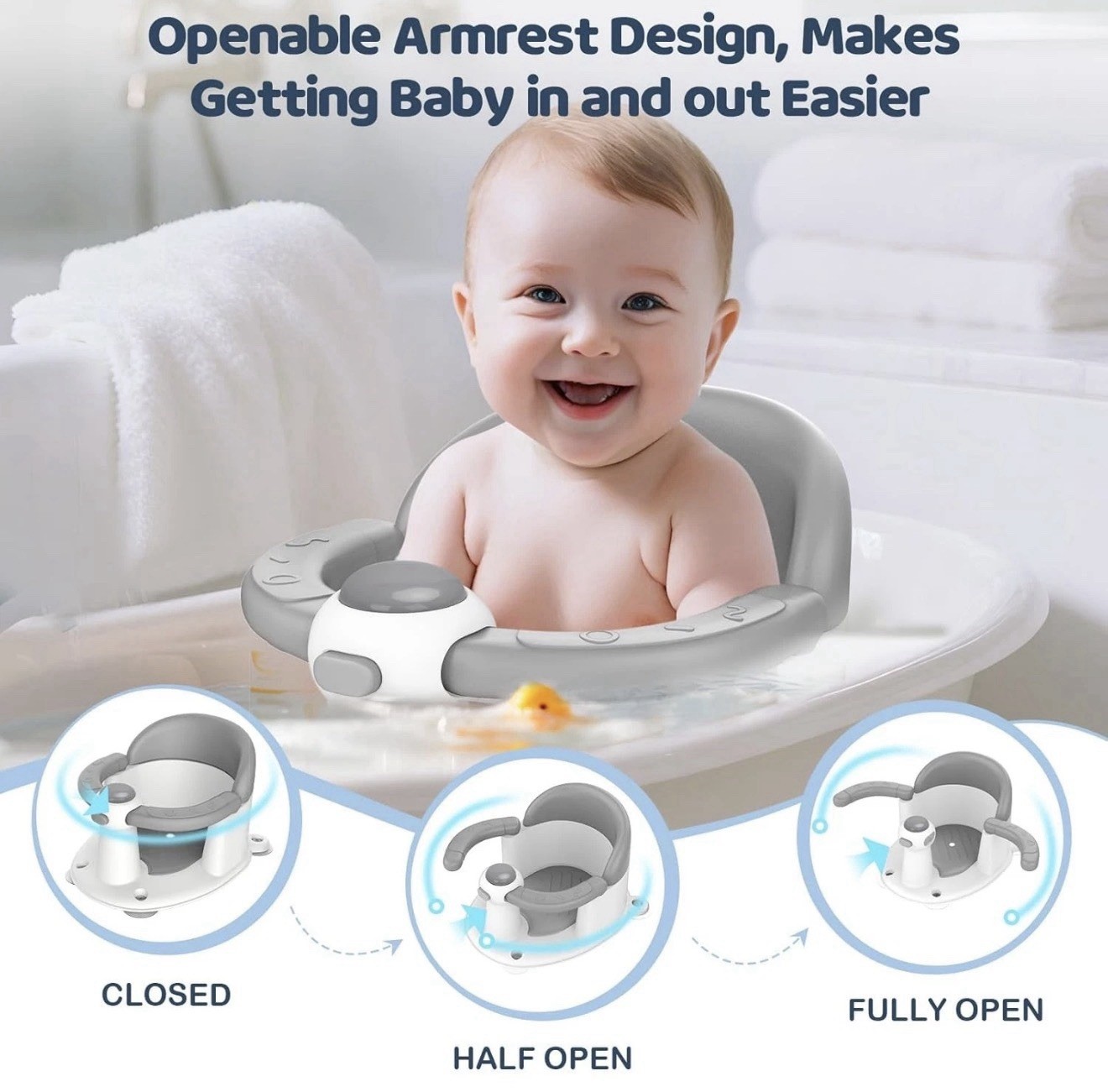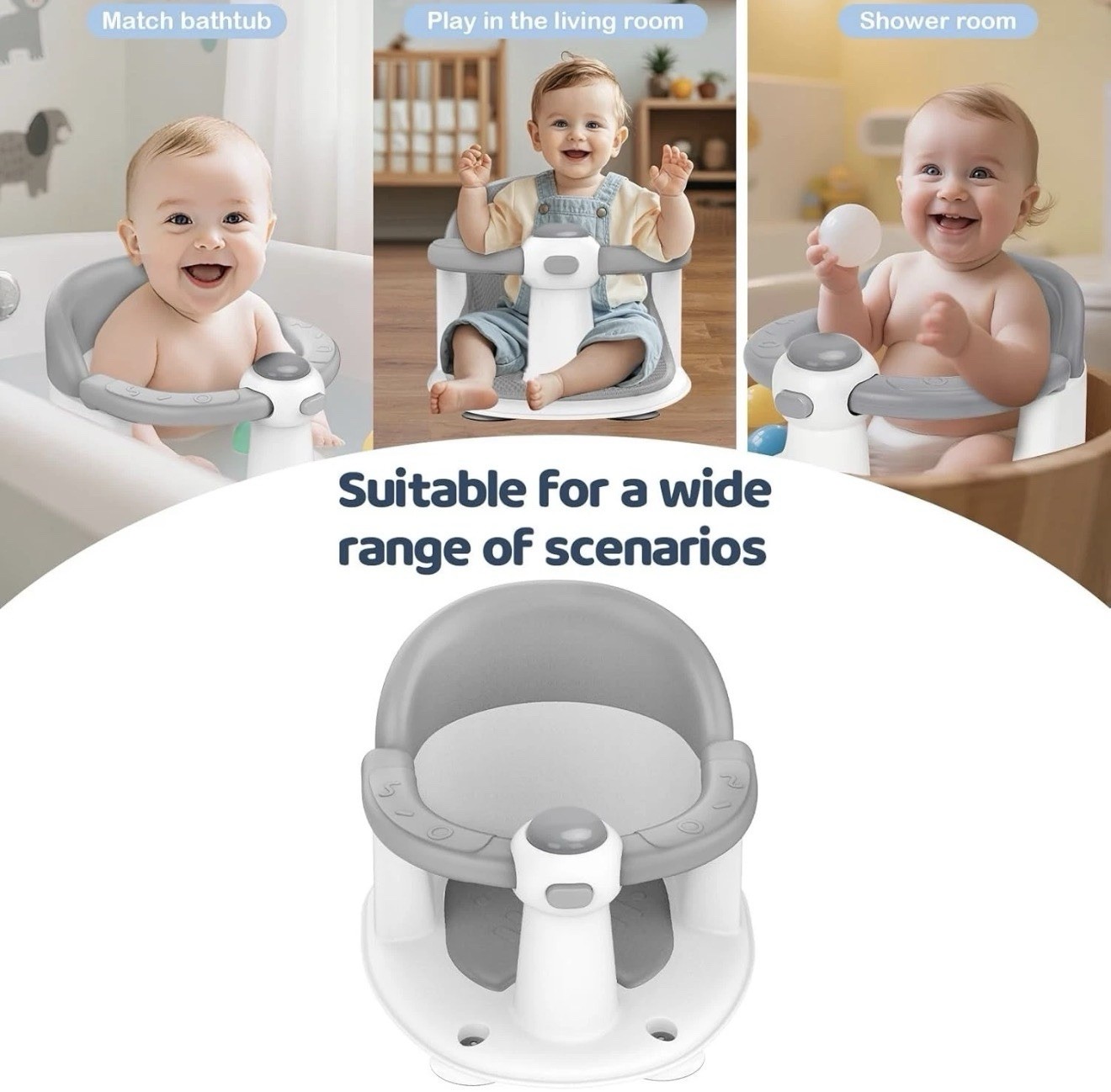 Baby Bath Seat for Babies 6 Months up, 3 Baby Bath Toys, Non-Slip Baby Bath
