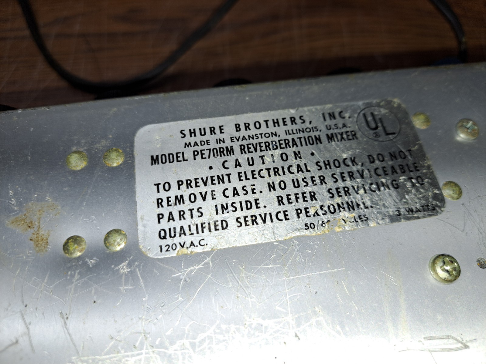 Shure PE70 RM REVERB Reverberation Mixer Unit with schematic UNTESTED