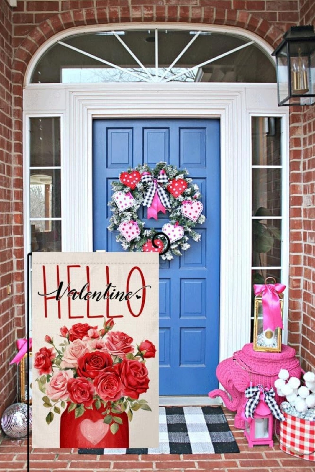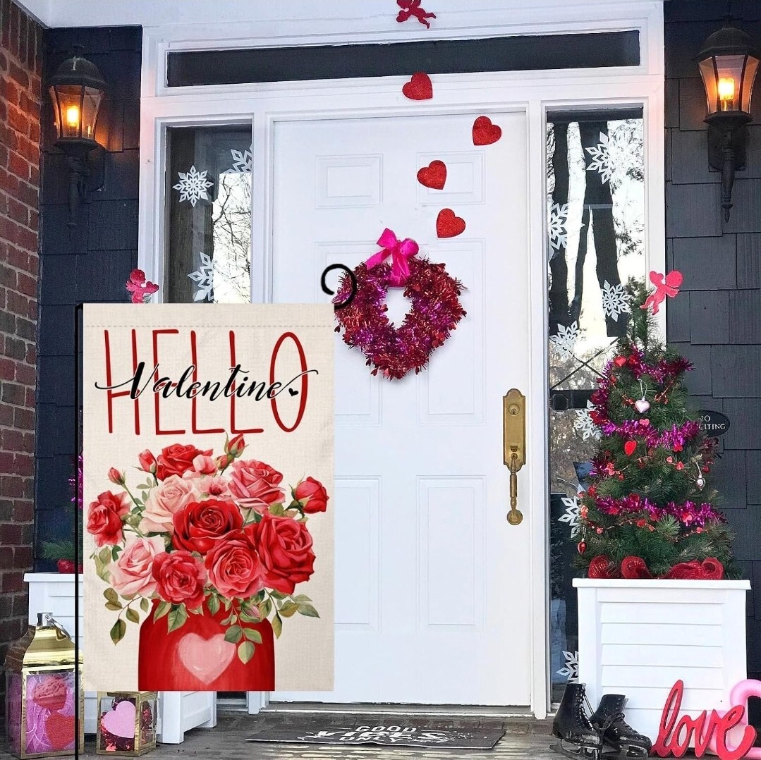 Valentine's Day Garden Flag 12x18 Inch Hello Valentine Flowers Red Love