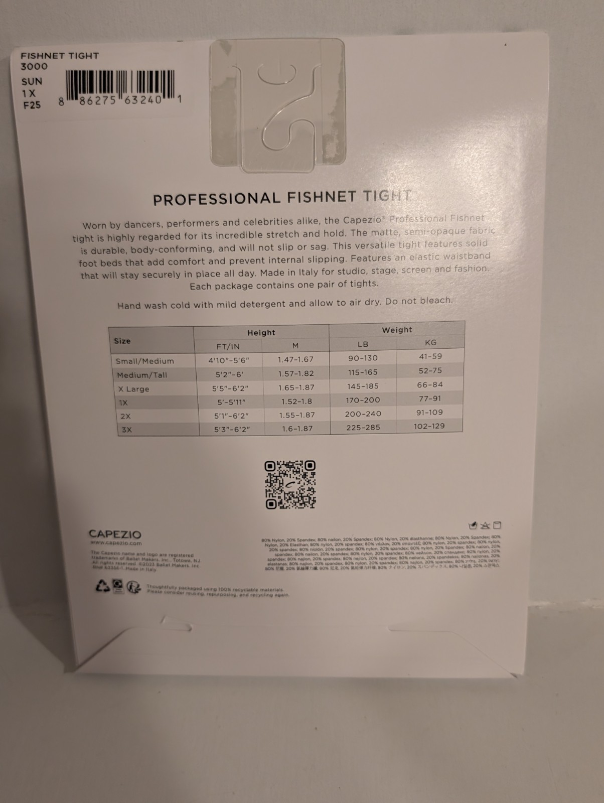 Capezio Women's Tight Size 1 XL Professional Fishnet Seamless 3000 Suntan, Matte
