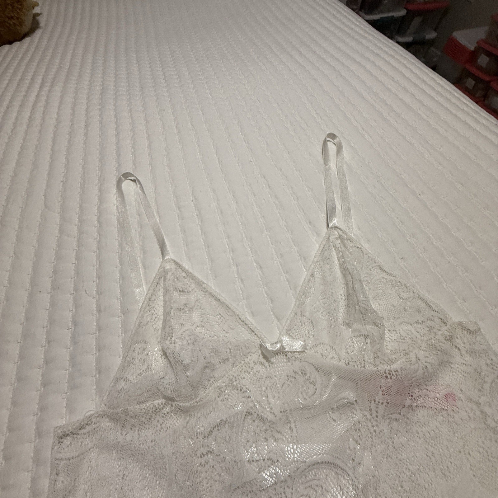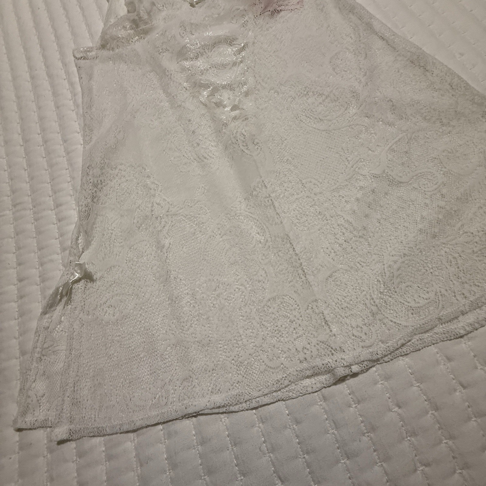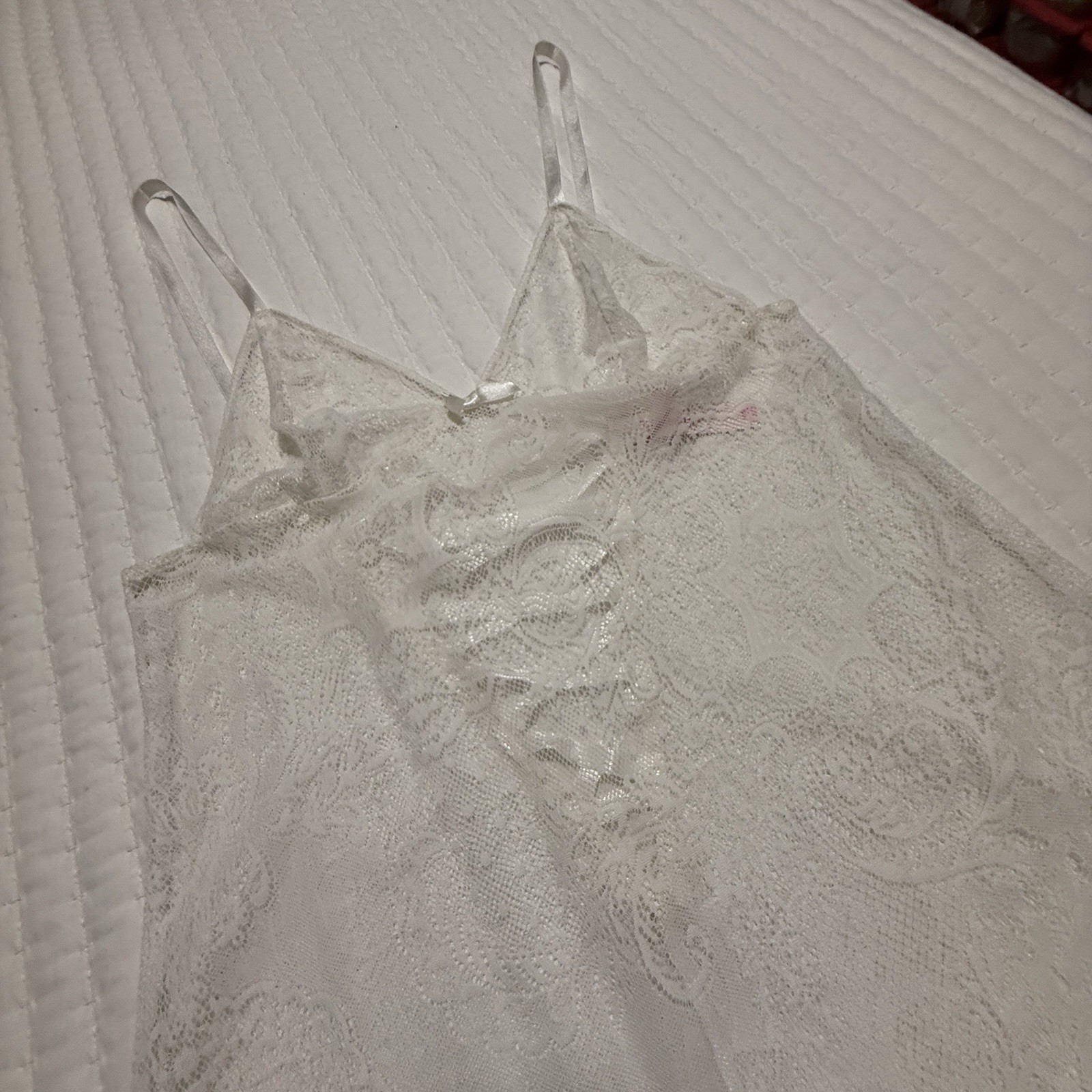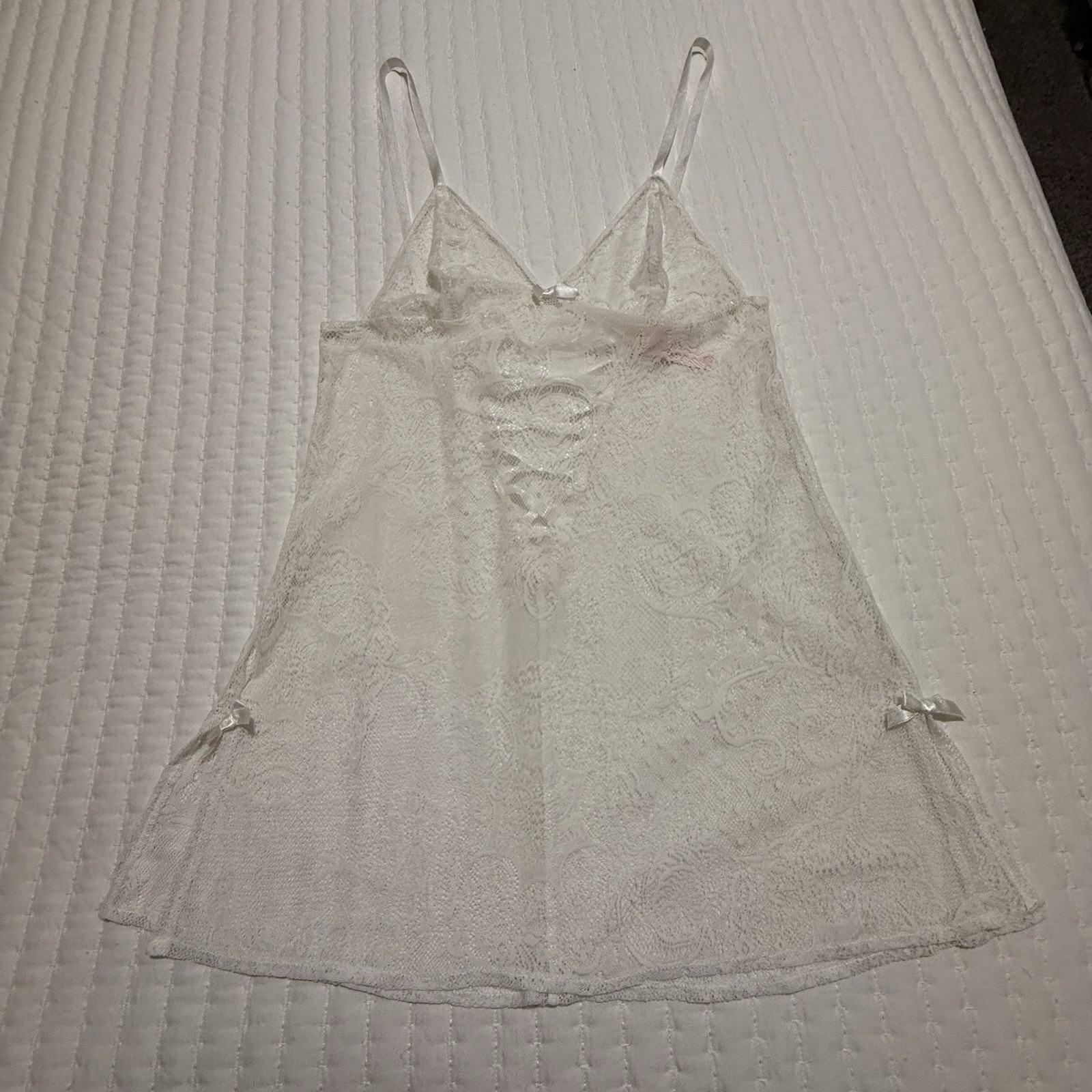 как выглядит Victoria s Secret Sheer Lace White Lingerie Chemise Slip M Medium Ribbon Accents фото