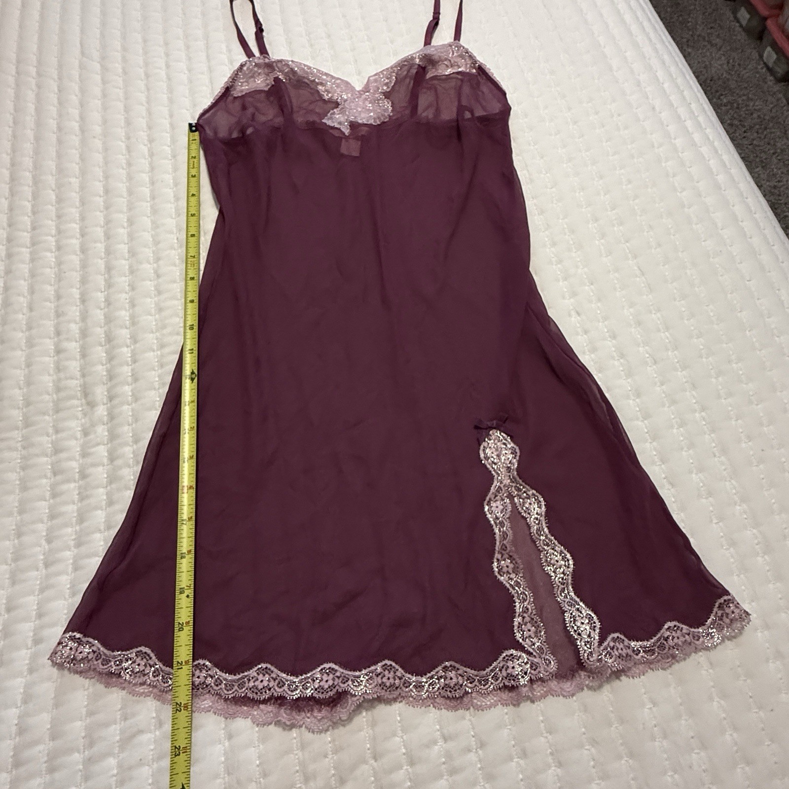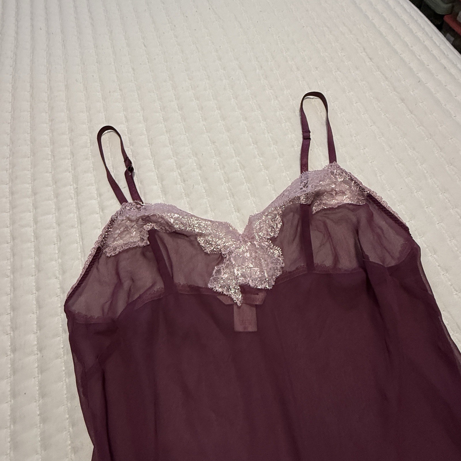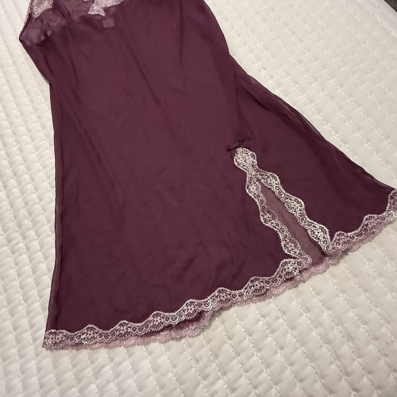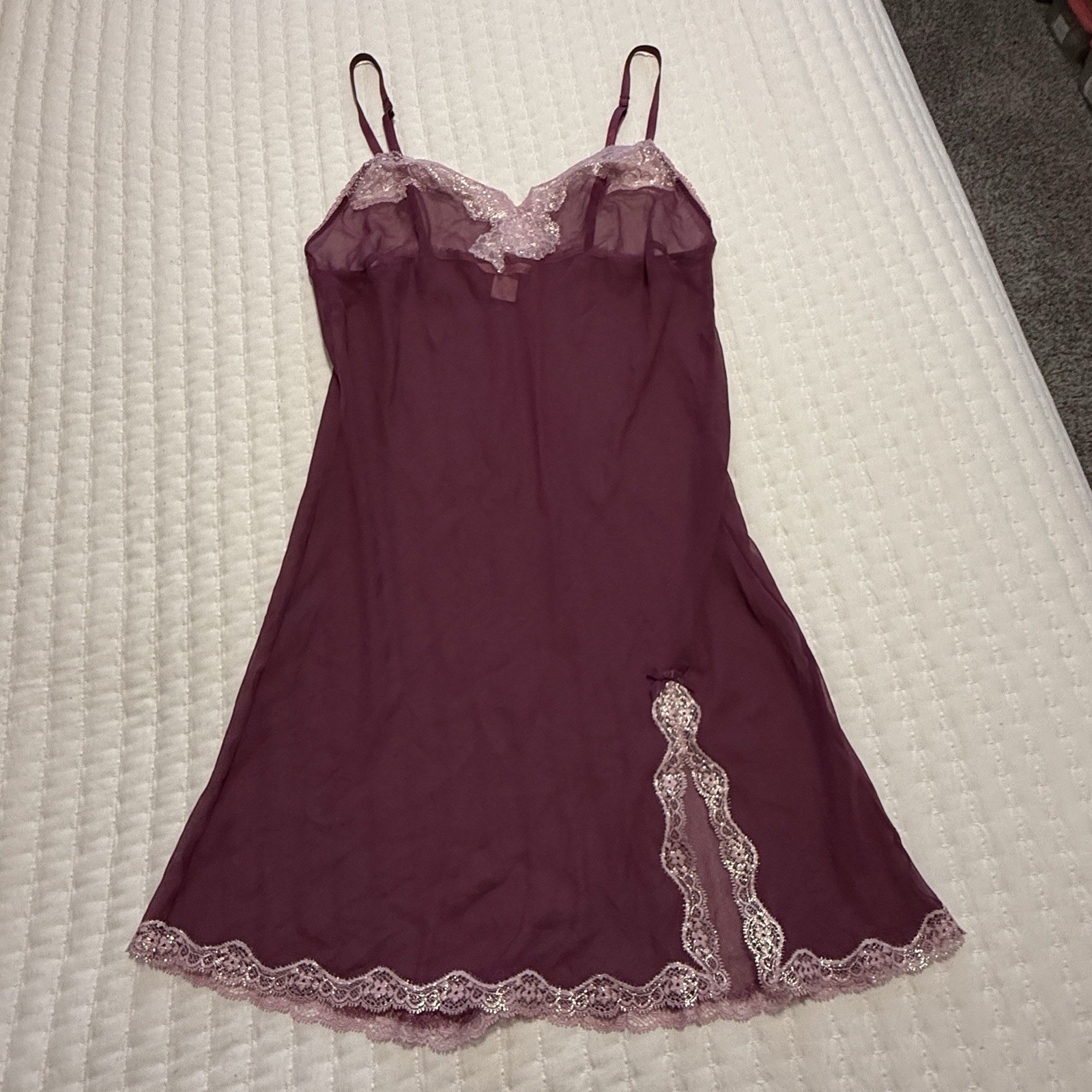 как выглядит Victoria s Secret Sheer Purple Chemise Slip Dress Sz S Small Pink Lace Trim фото