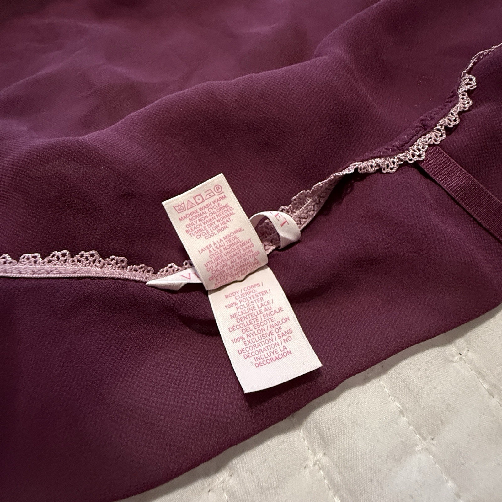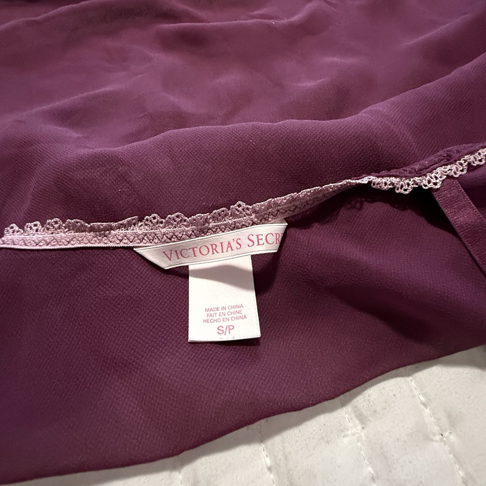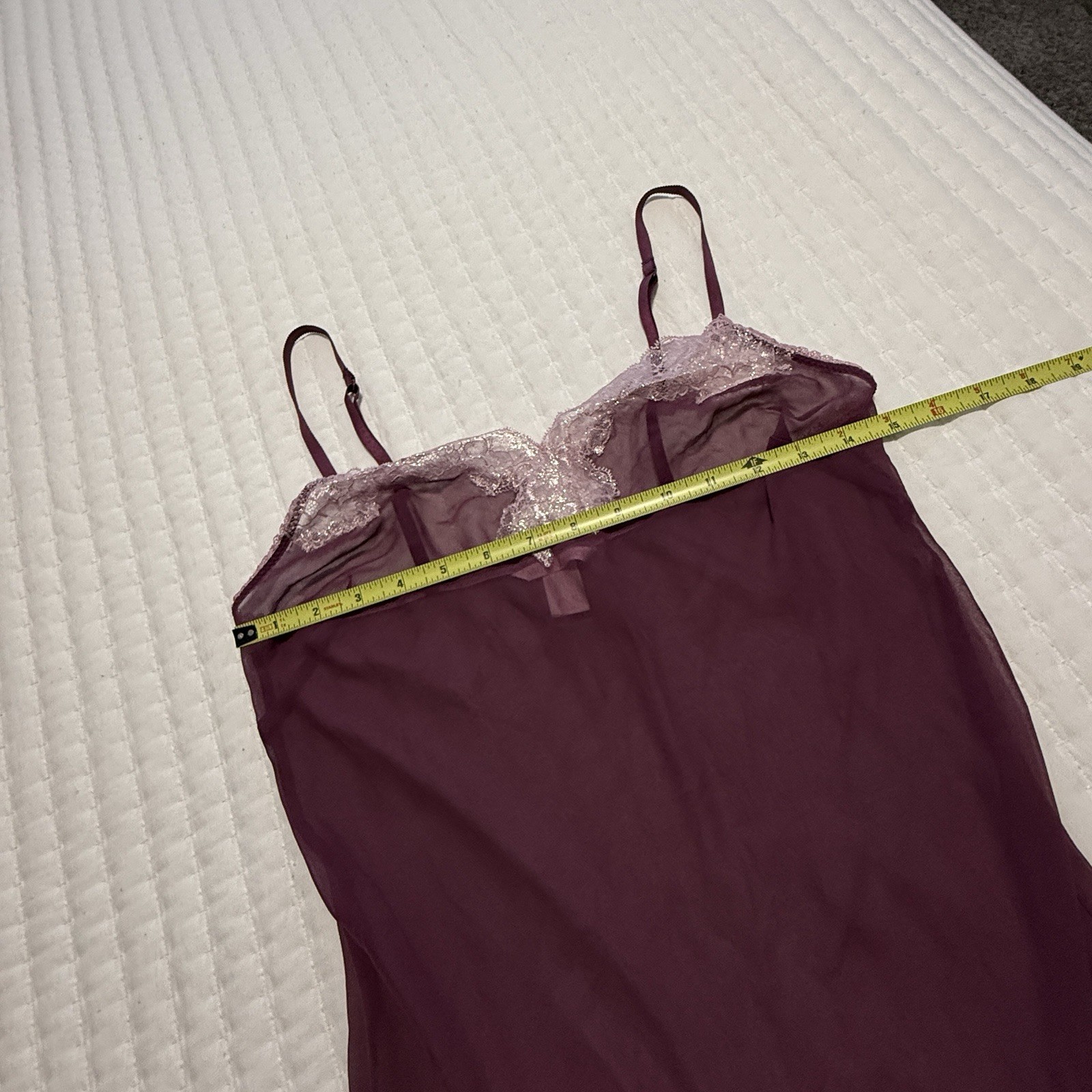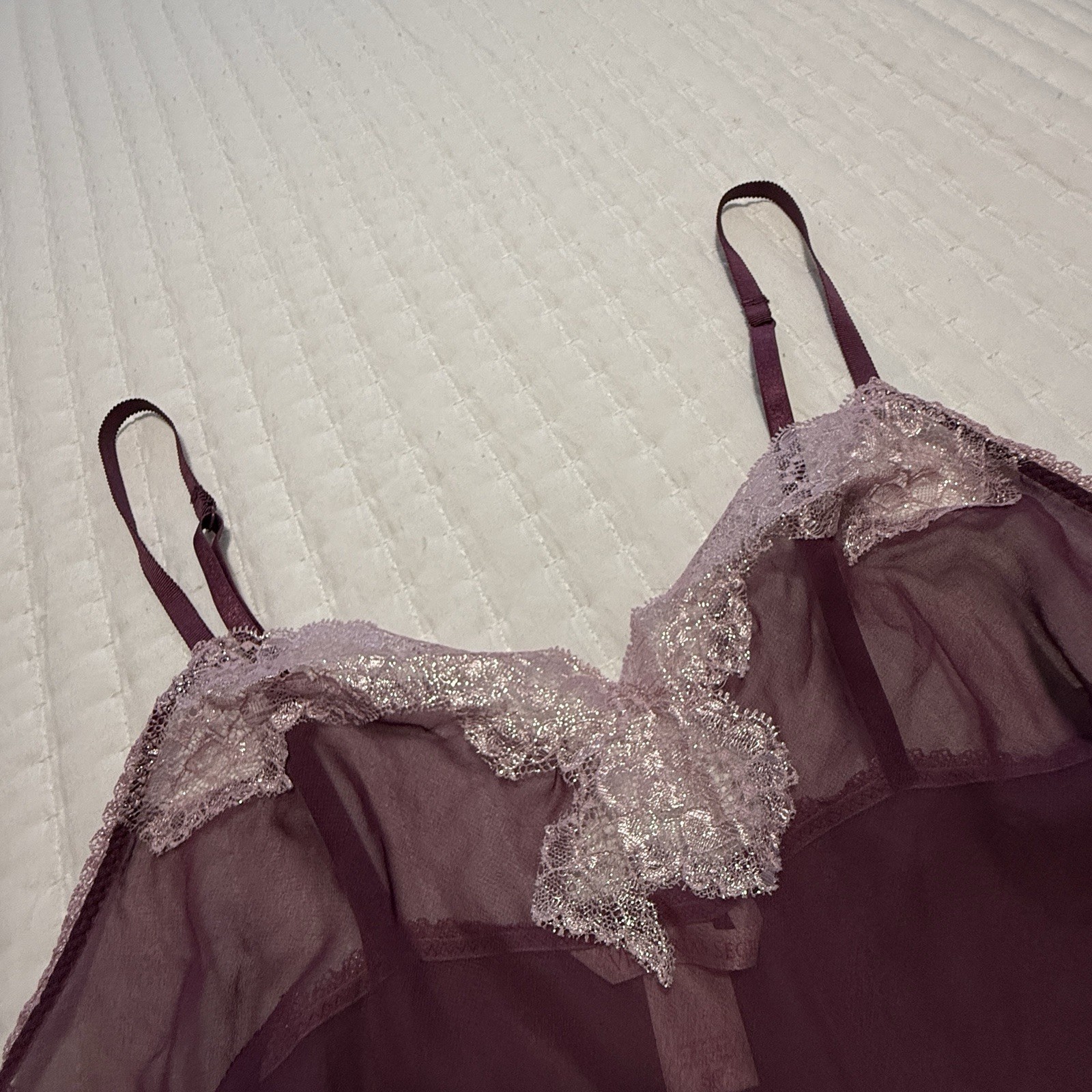как выглядит Victoria s Secret Sheer Purple Chemise Slip Dress Sz S Small Pink Lace Trim фото