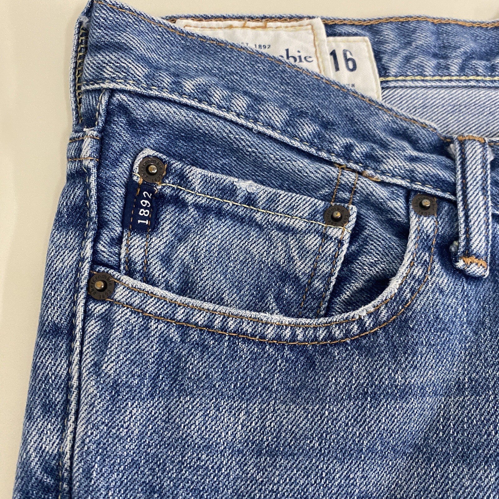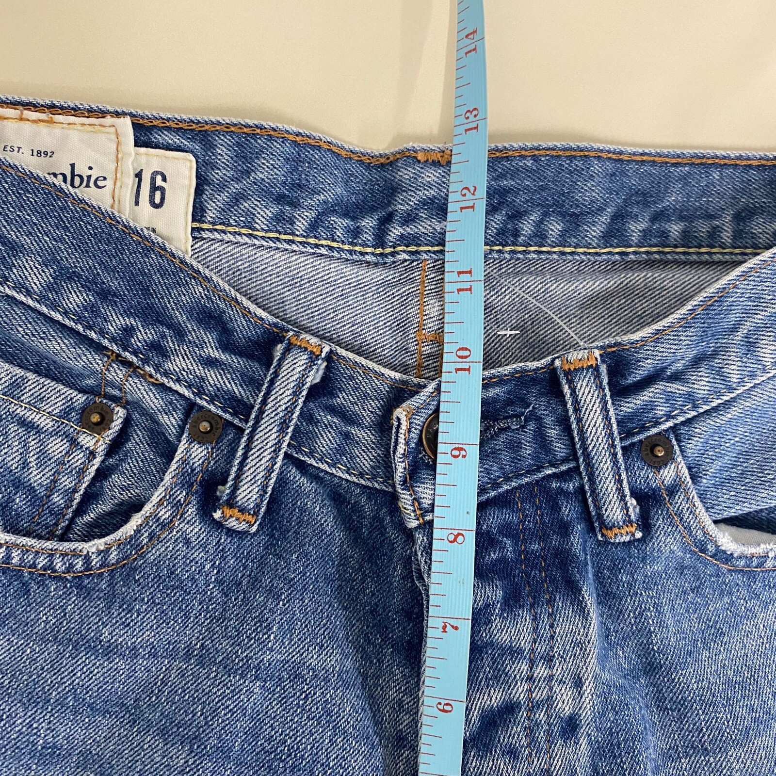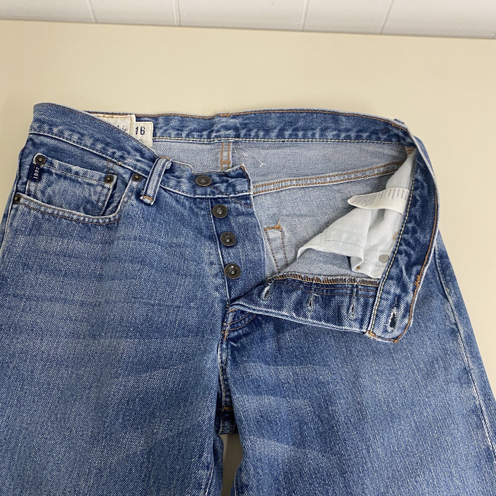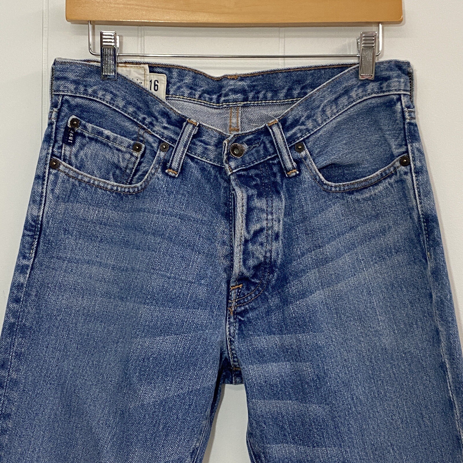 как выглядит Abercrombie Fitch Horton Classic Straight Jeans Boys 16 Blue Denim Button Fly фото