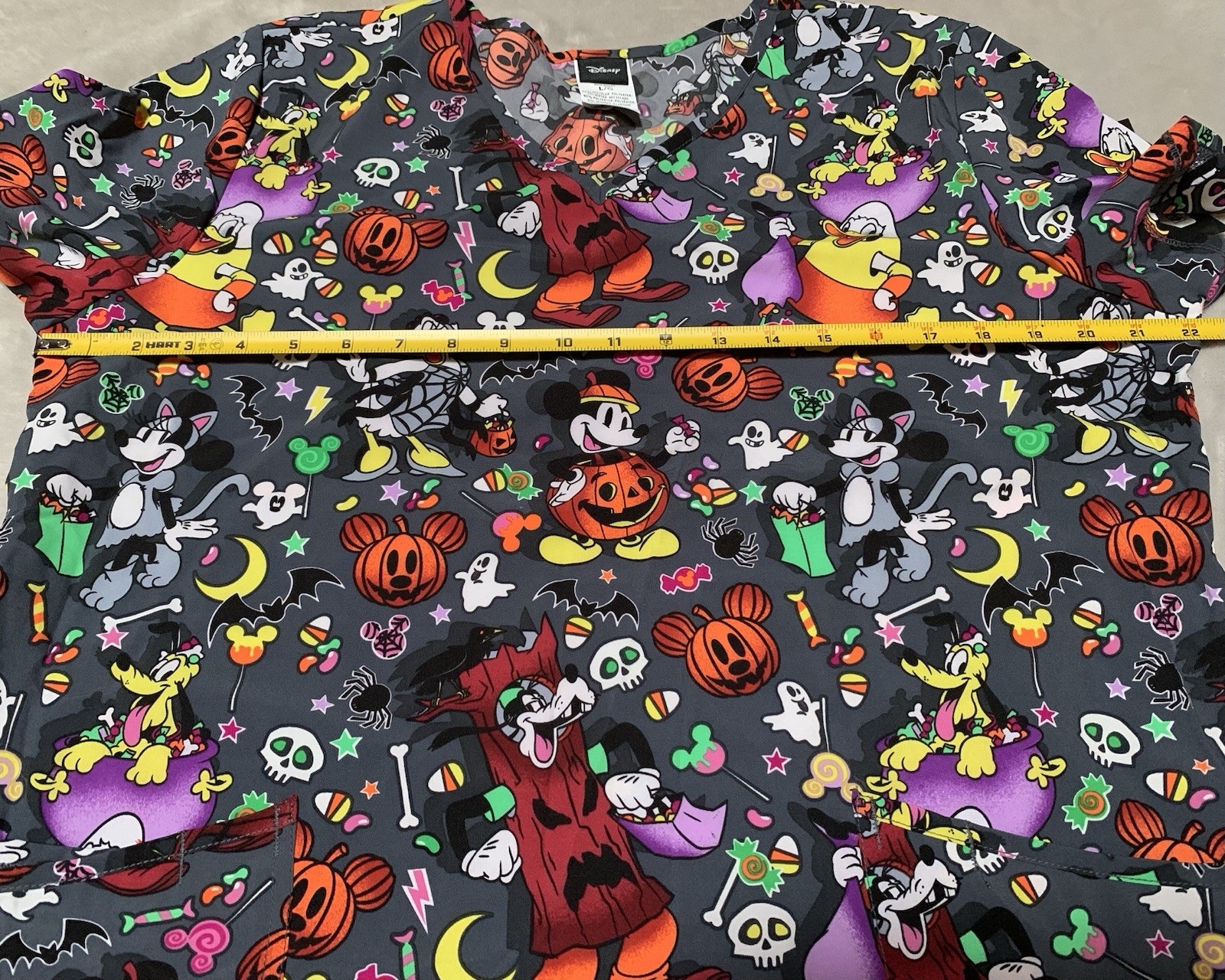 NEW Disney Mickey Mouse Friends Halloween Fun Women's V-Neck Scrub Top Size LG