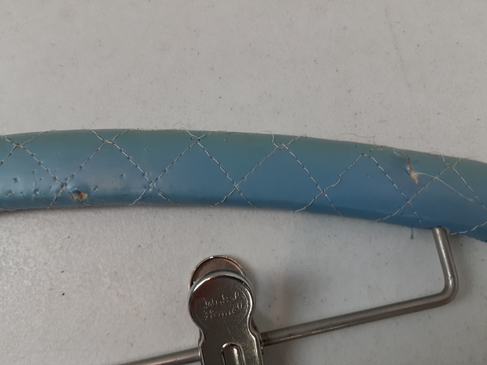 как выглядит Lot of 4 VINTAGE Vinyl Covered Clip Hangers MODEL HOME 16" Blue RARE 126 фото