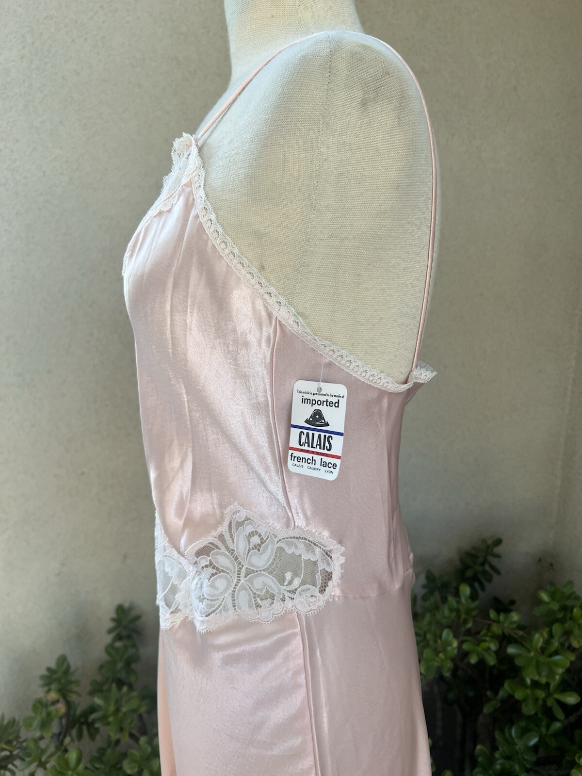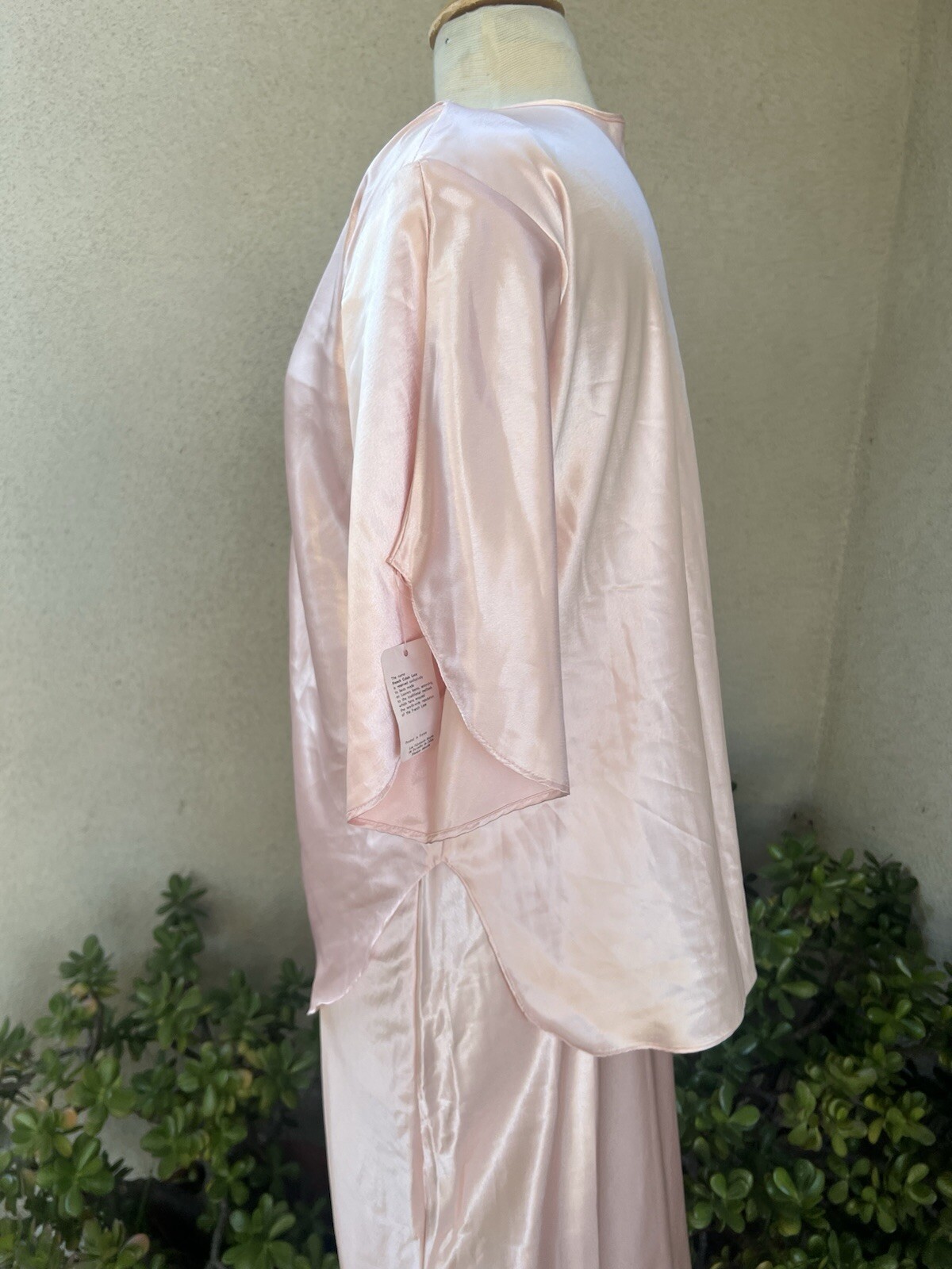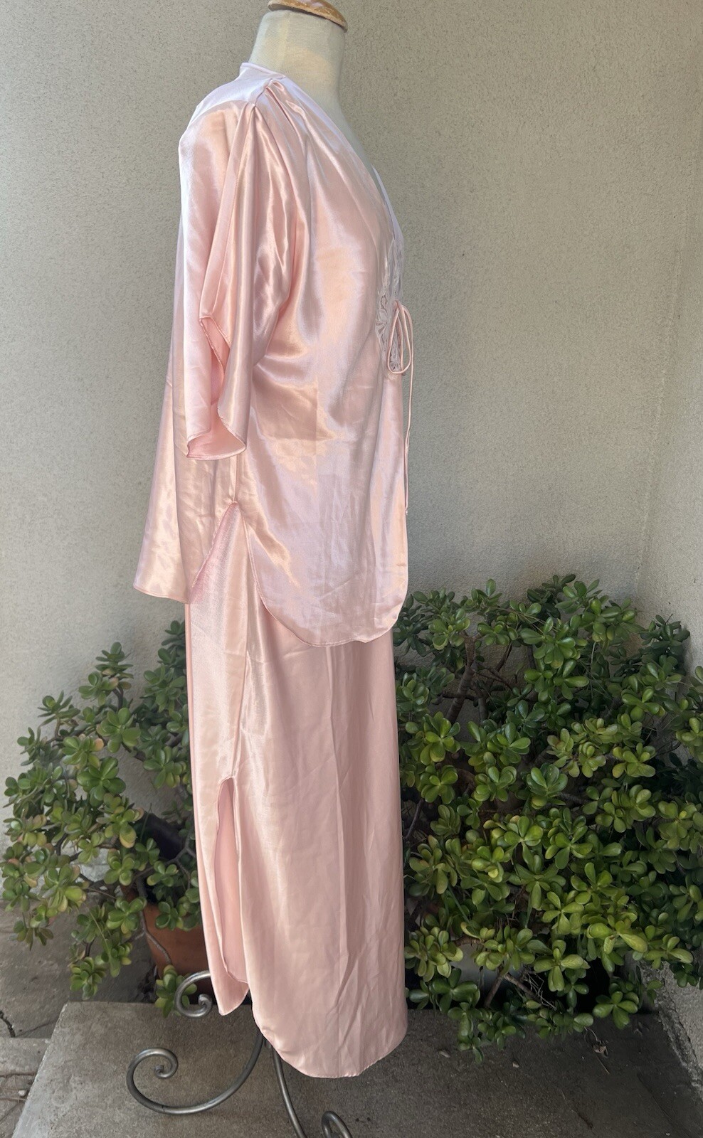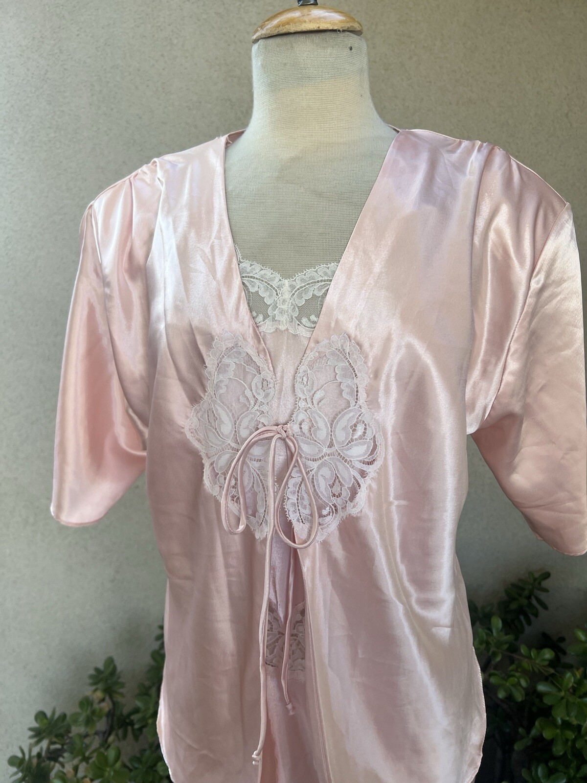 как выглядит Vtg 80s Pink Satin Robe Nightgown Set M Lace California Dynasty NWT фото