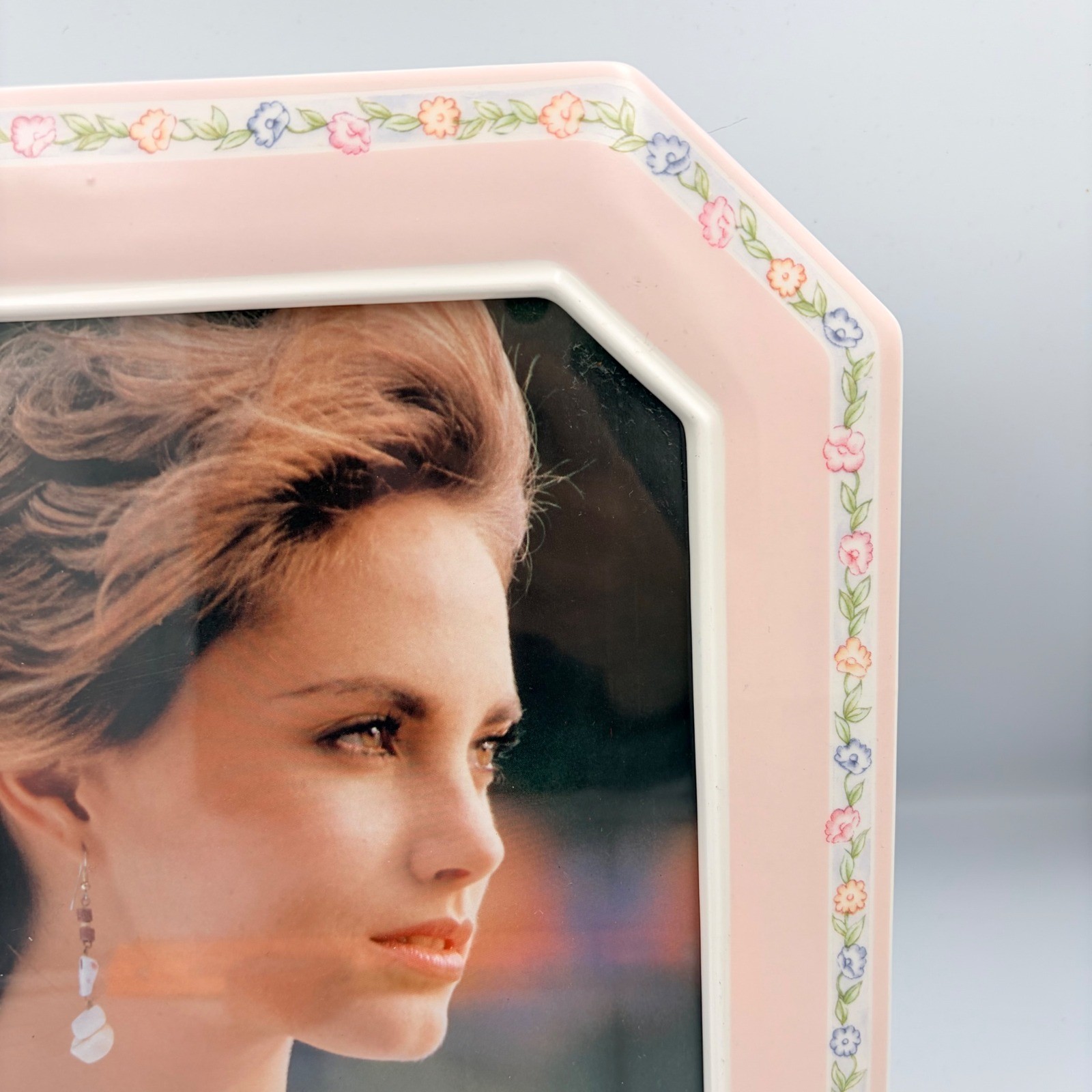 как выглядит Vintage Pink Octagon Photo Frame Floral Accent 8x10 Made in Taiwan Tabletop фото