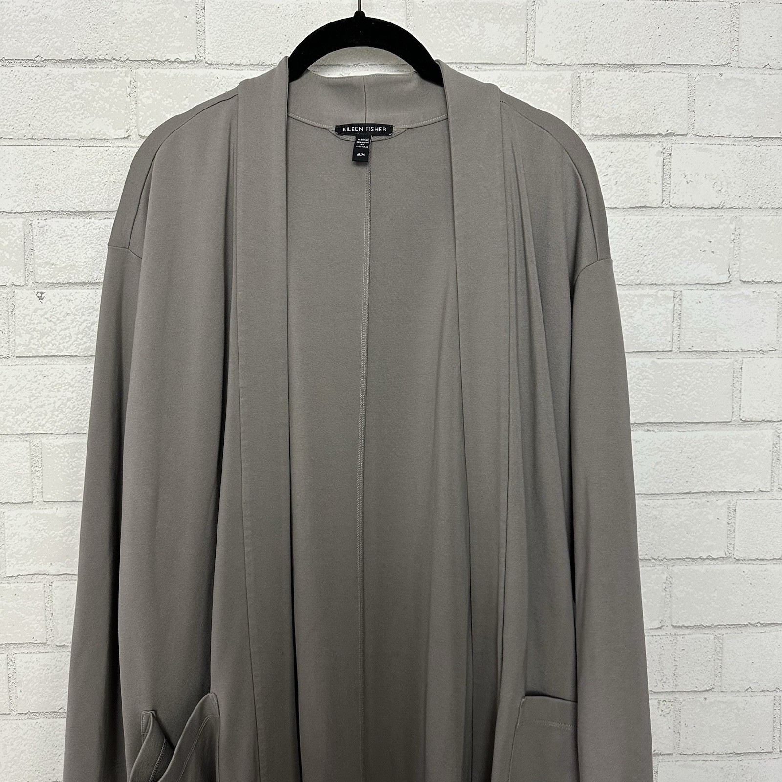 EILEEN FISHER Gray/Taupe TENCEL Ponte Knit Mid Length Robe Size Medium
