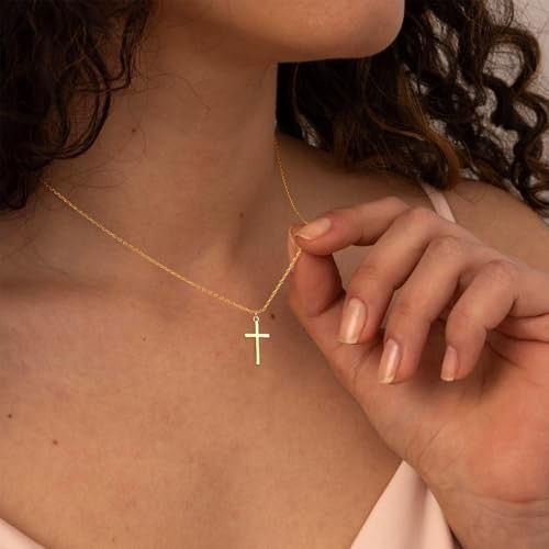 Dainty 14K Gold Silver Plated Cross Necklace for Women Girls - Trendy Choker P