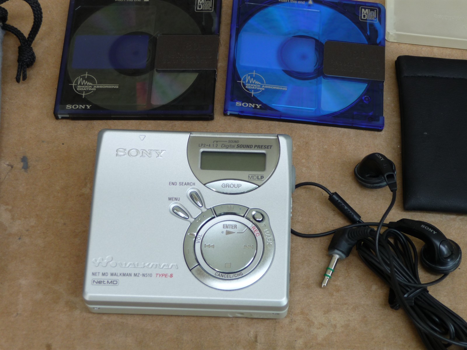 Sony Net MD Walkman MZ N510 Type-S MiniDisc Player Recorder w Accessories MDs