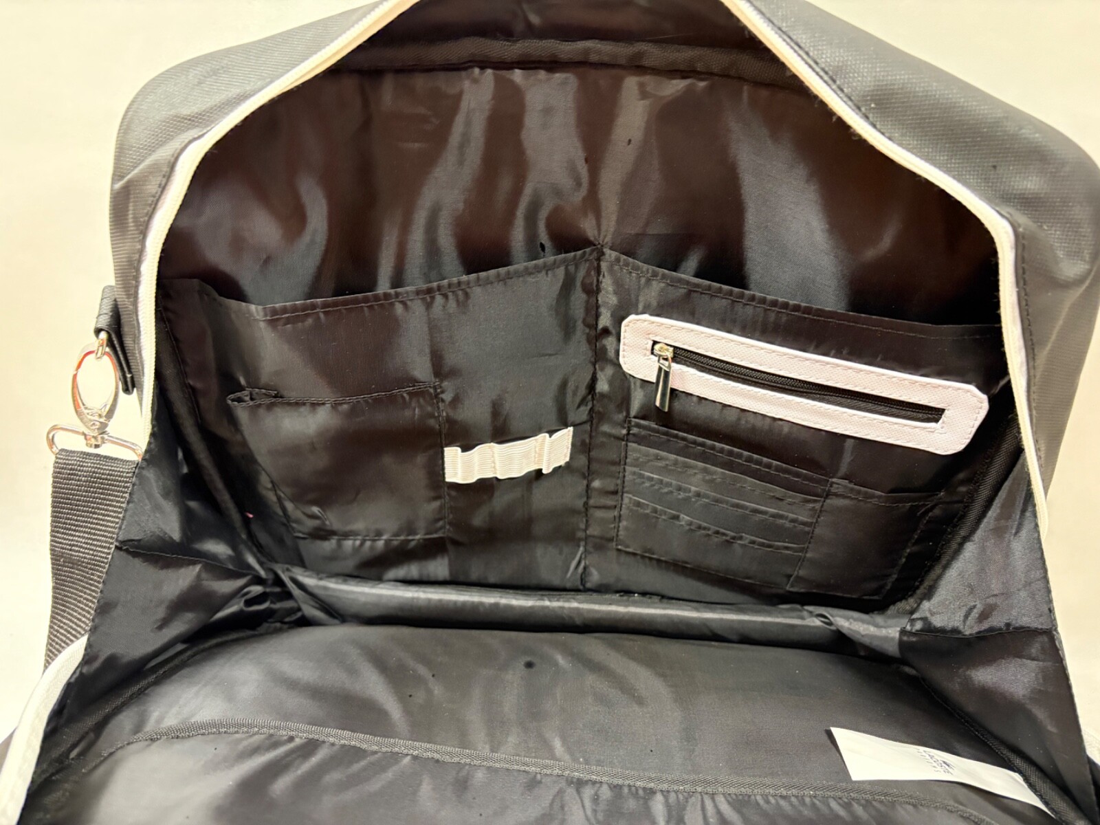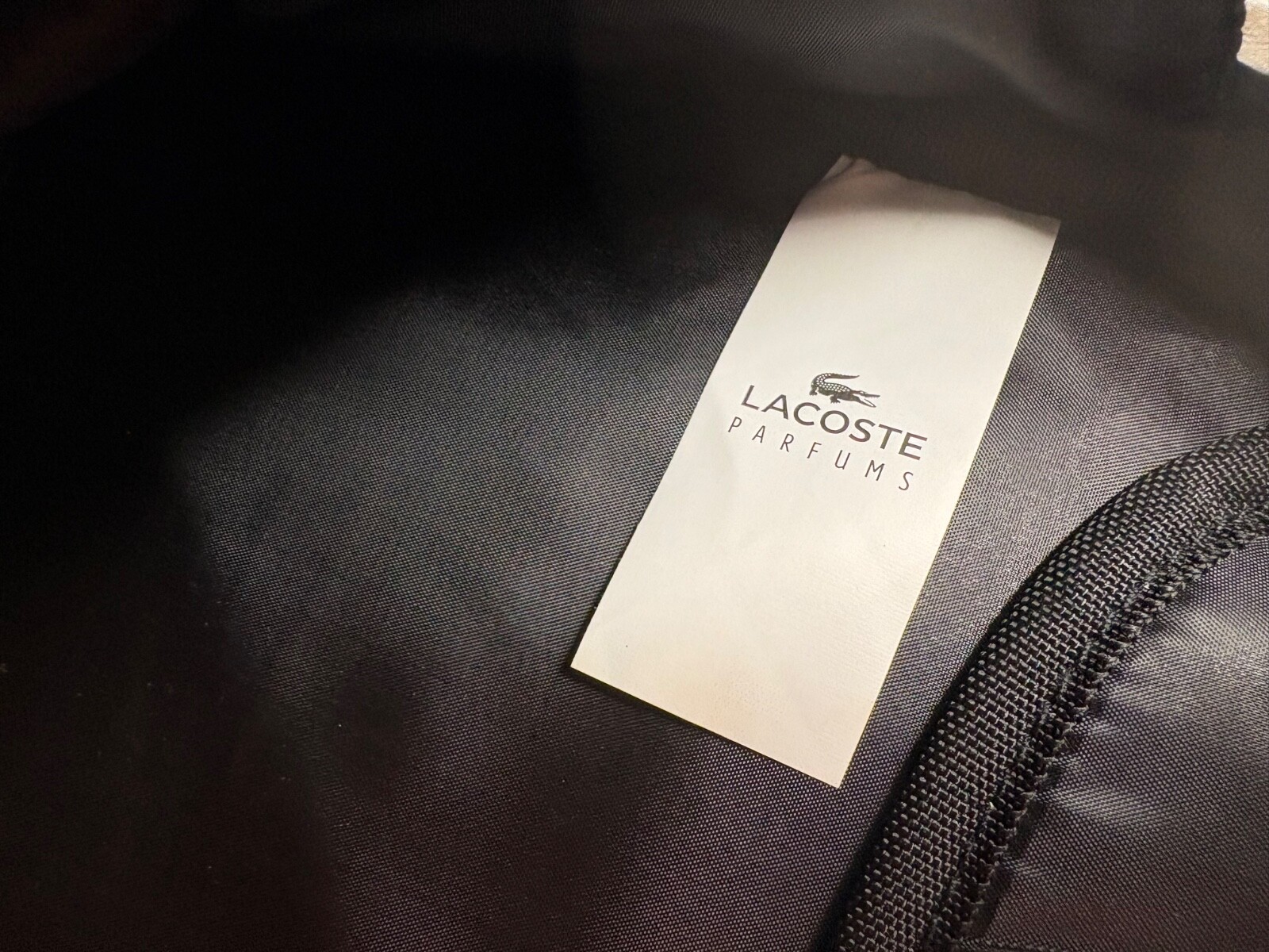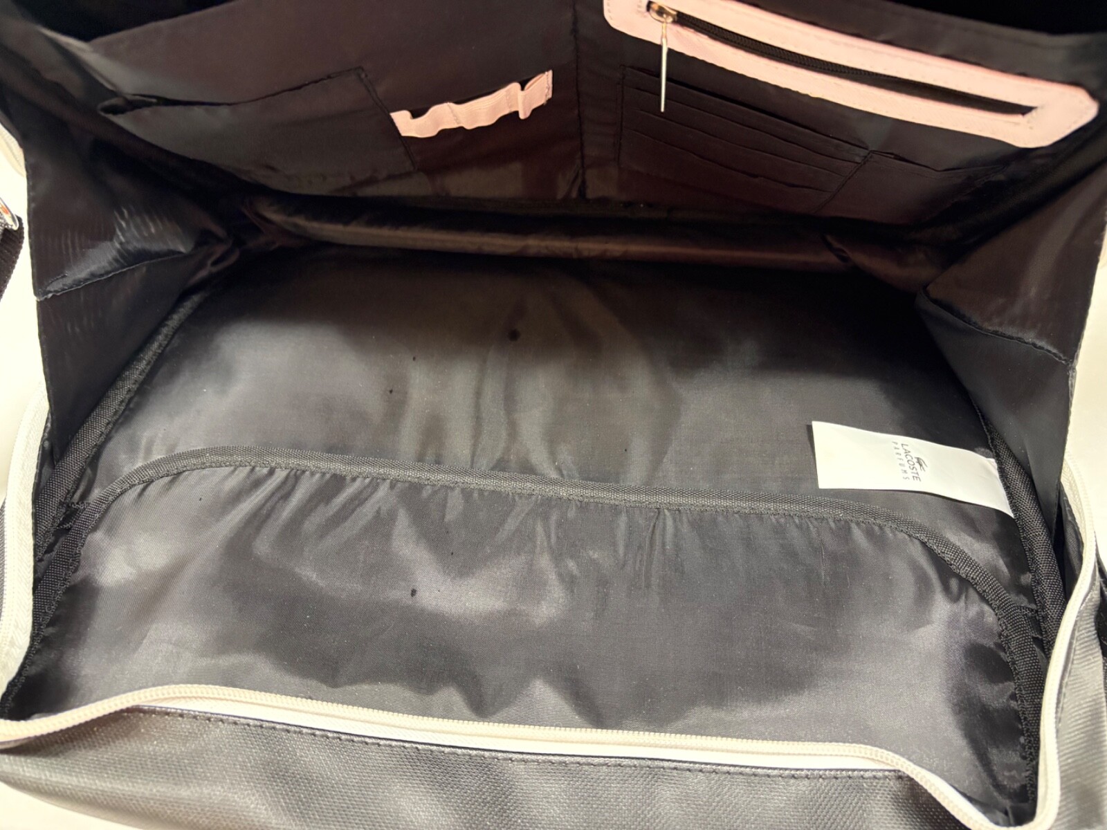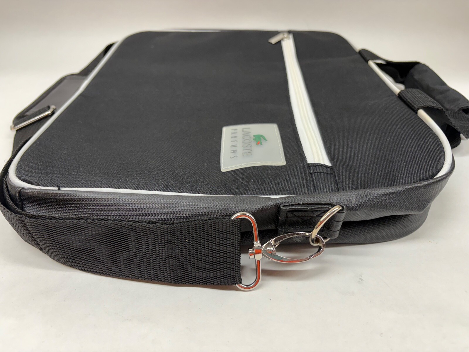 LACOSTE PARFUMS Messager Laptop Canvas Bag Cross Body Shoulder Black White trim