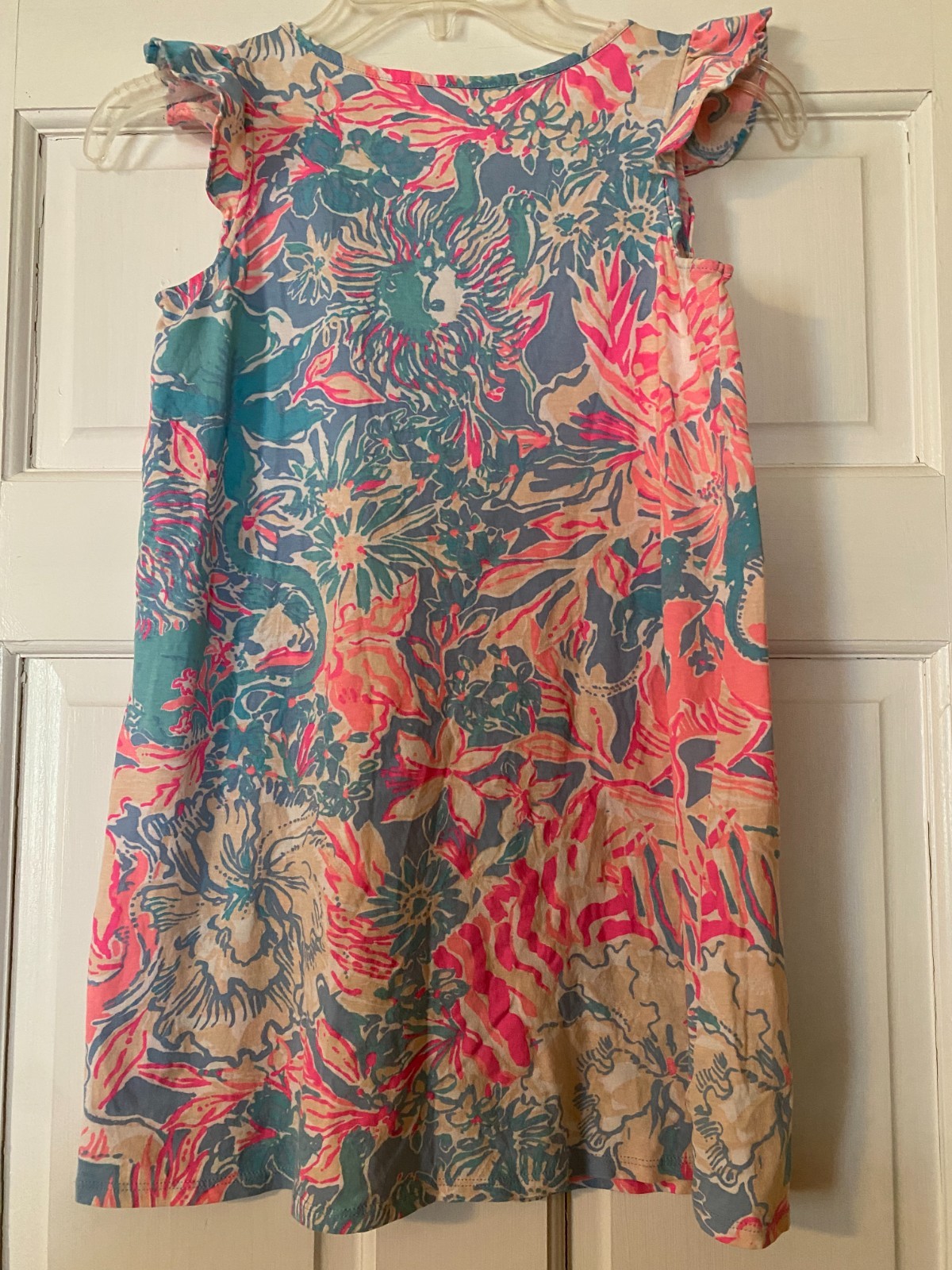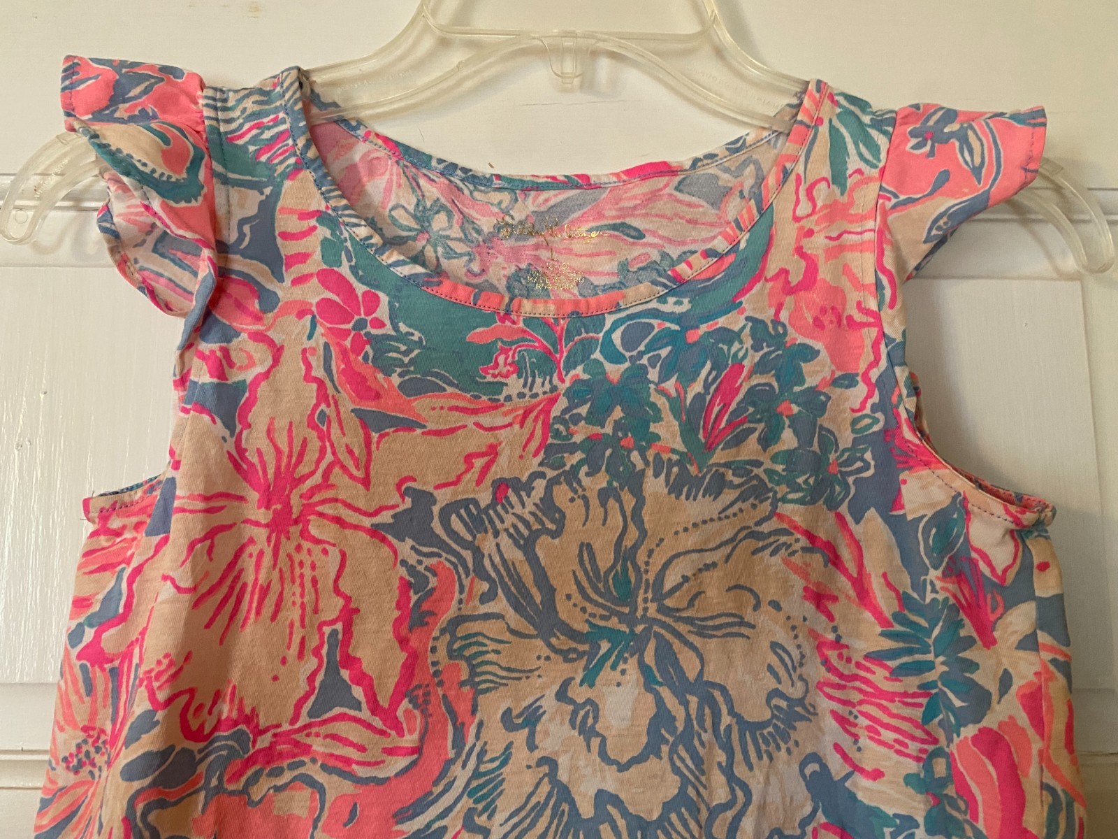 LILLY PULITZER Girls Ella Dress Size Large 8-10 Flutter Sleeve Viva La Lilly