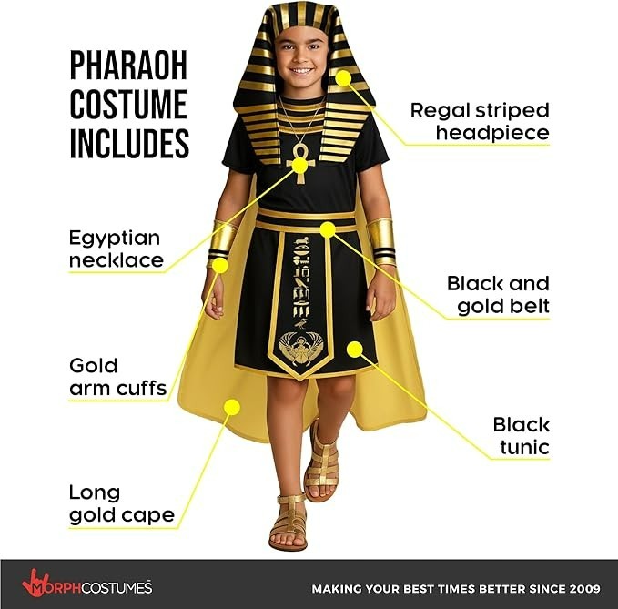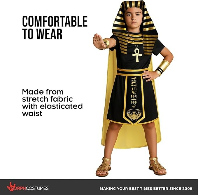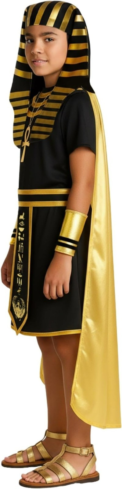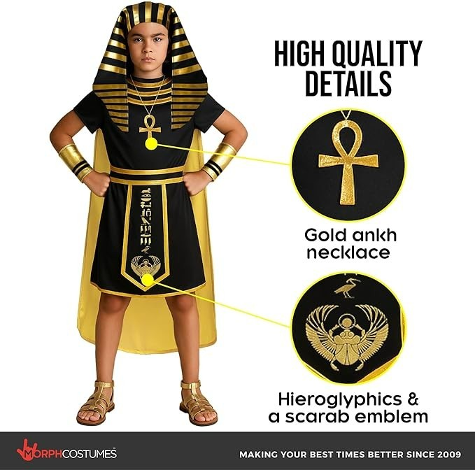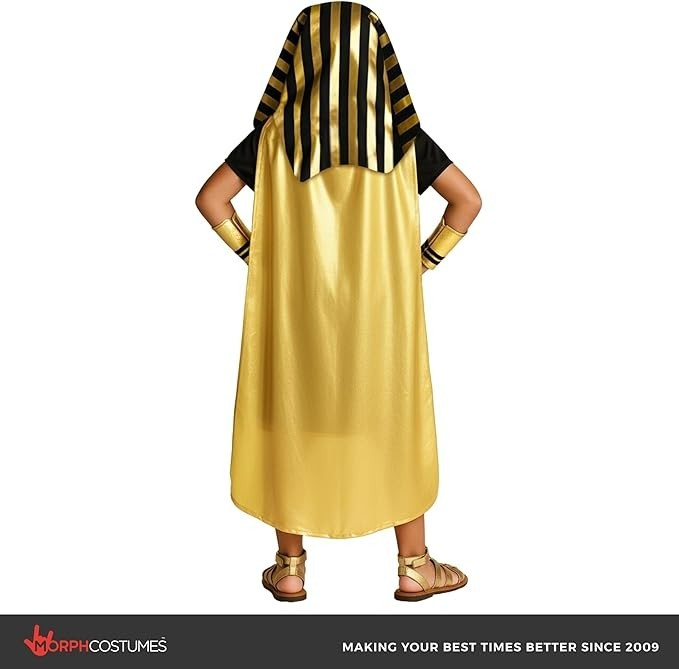 Kids Pharaoh Costume Boys Egyptian King Tunic Accessories 4-12 Yrs Halloween
