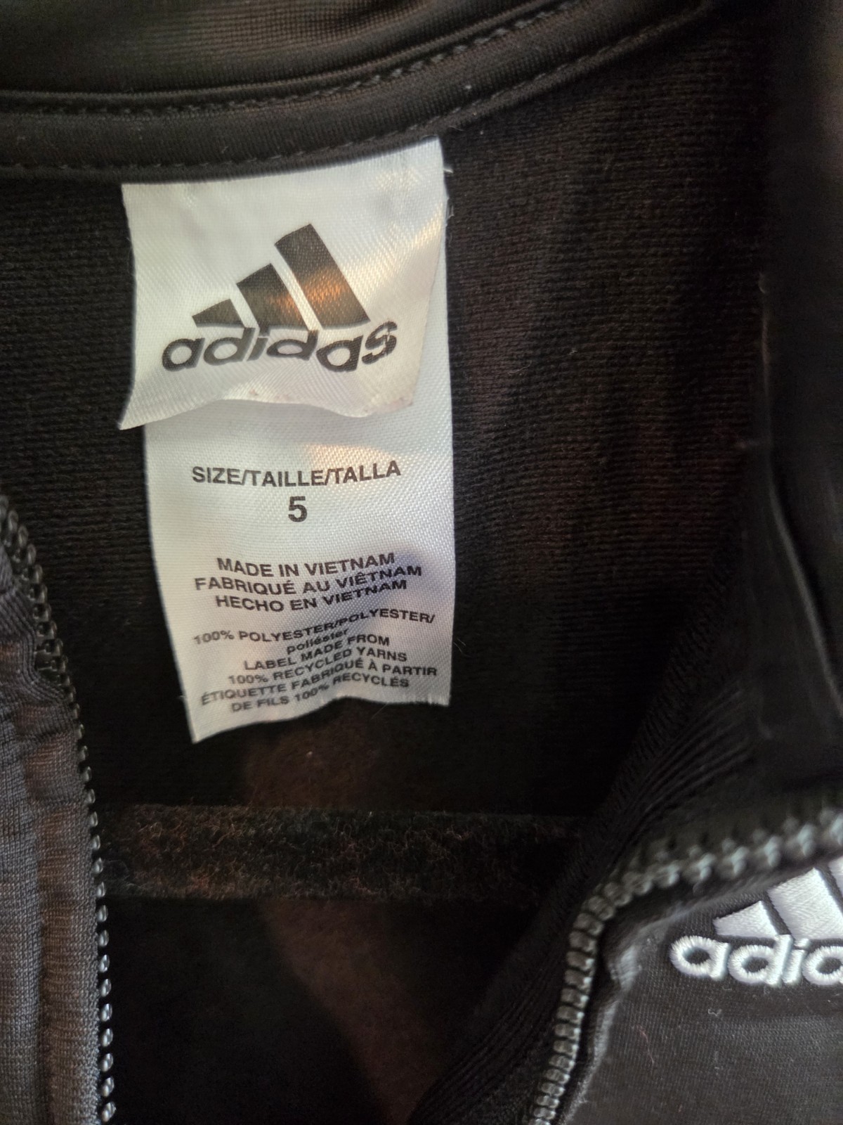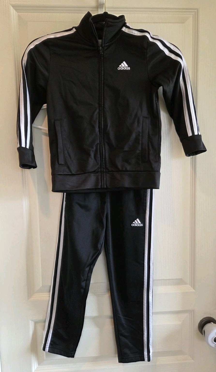 как выглядит 2 Piece Little Kids Adidas Track Suit Black And White Jacket Pants Size 5/6 Zip фото