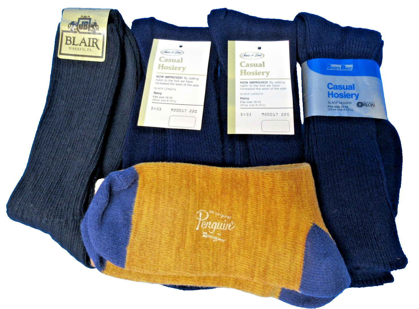 Vtg Mens Socks Lot 5 Pairs SEARS BEST, JB BLAIR PENGUIN MUNSINGWEAR