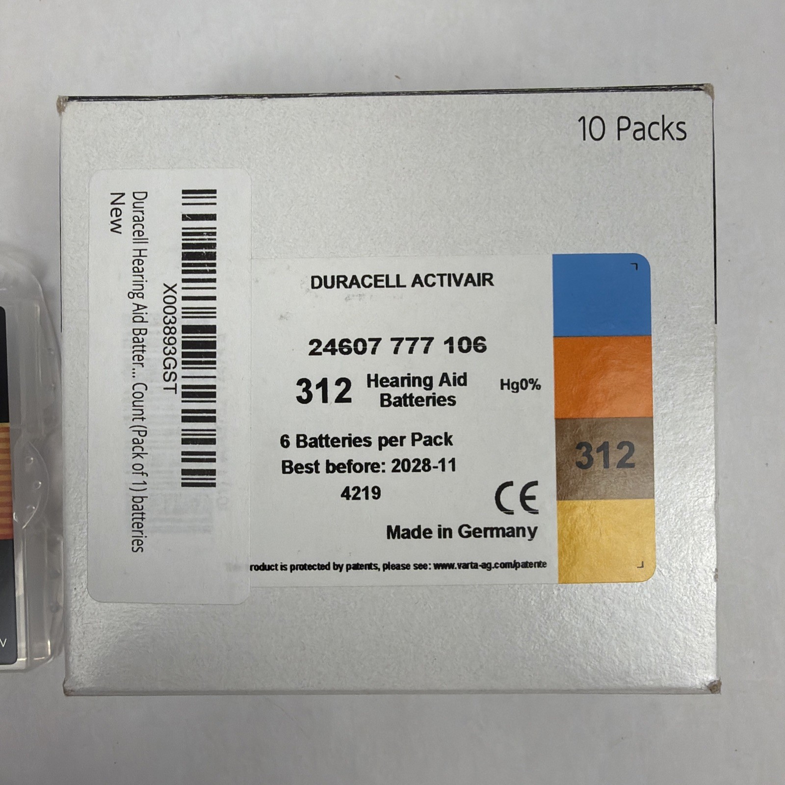 Duracell Activair Hearing Aid Batteries Size 312 57 Batteries Exp 11/2028