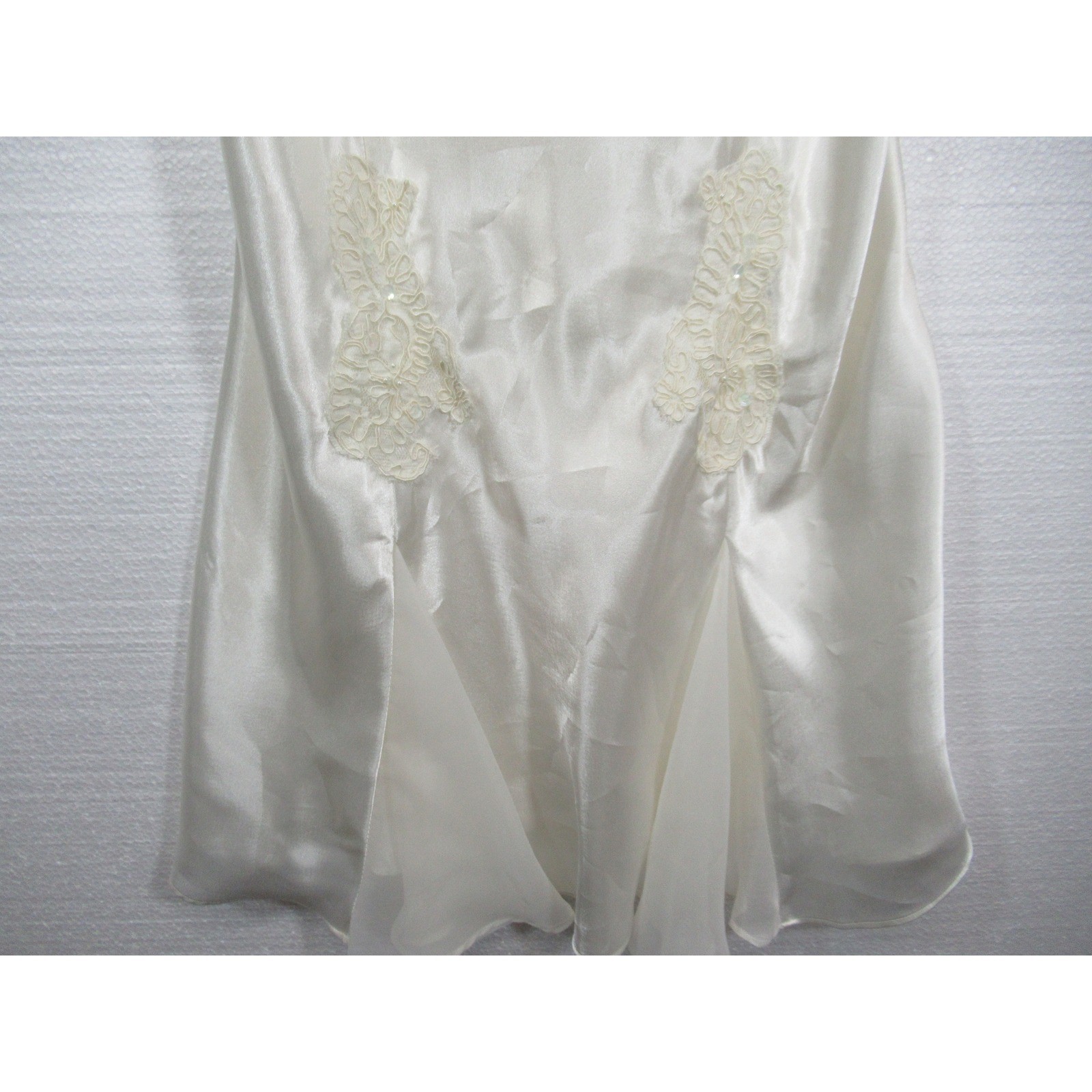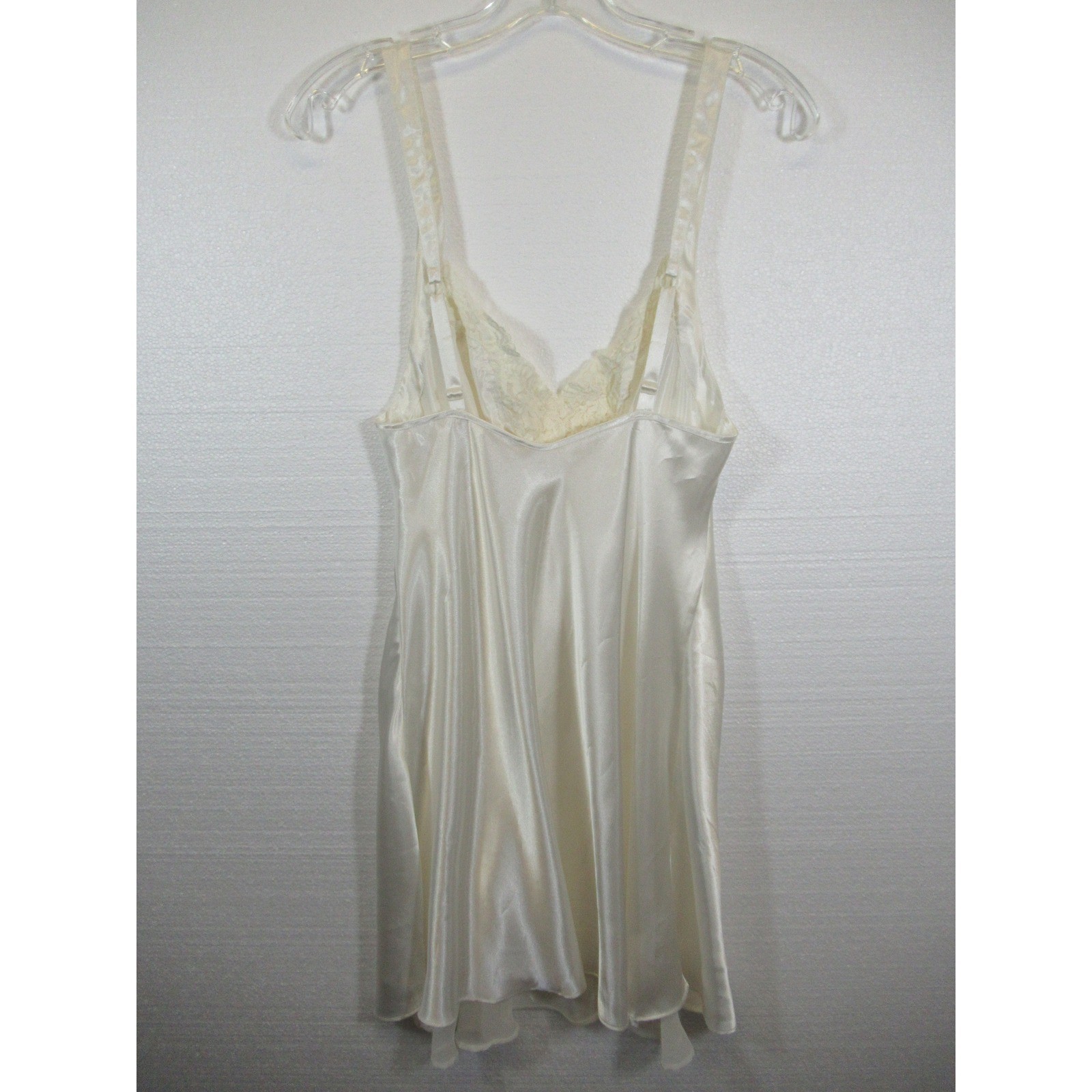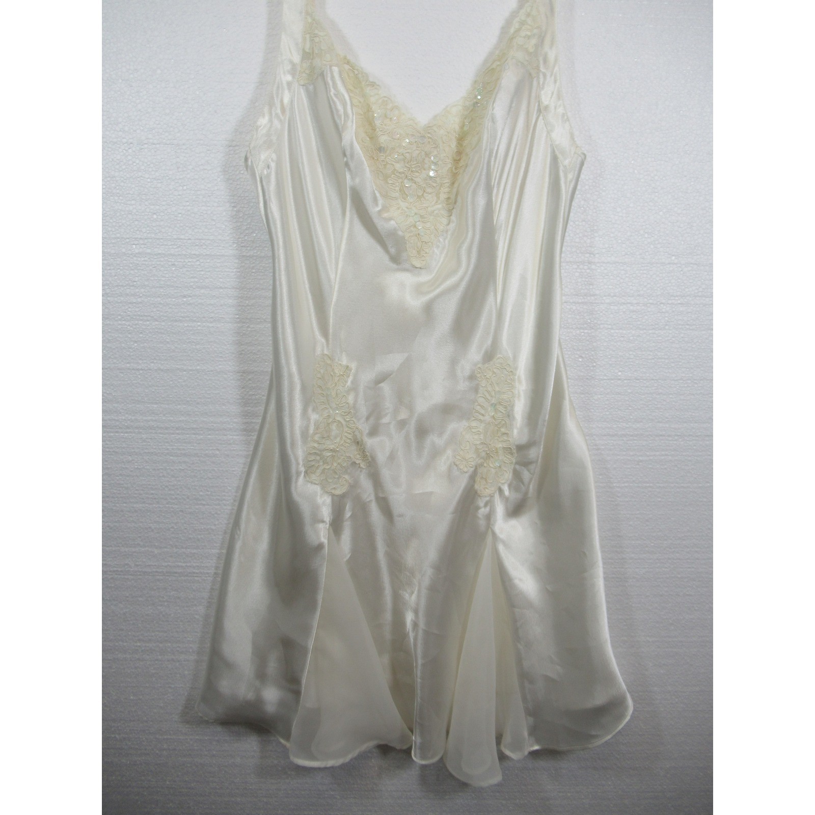 Vintage 90s Victoria's Secret Satin Babydoll Slip Chemise Women M Ivory Sequins