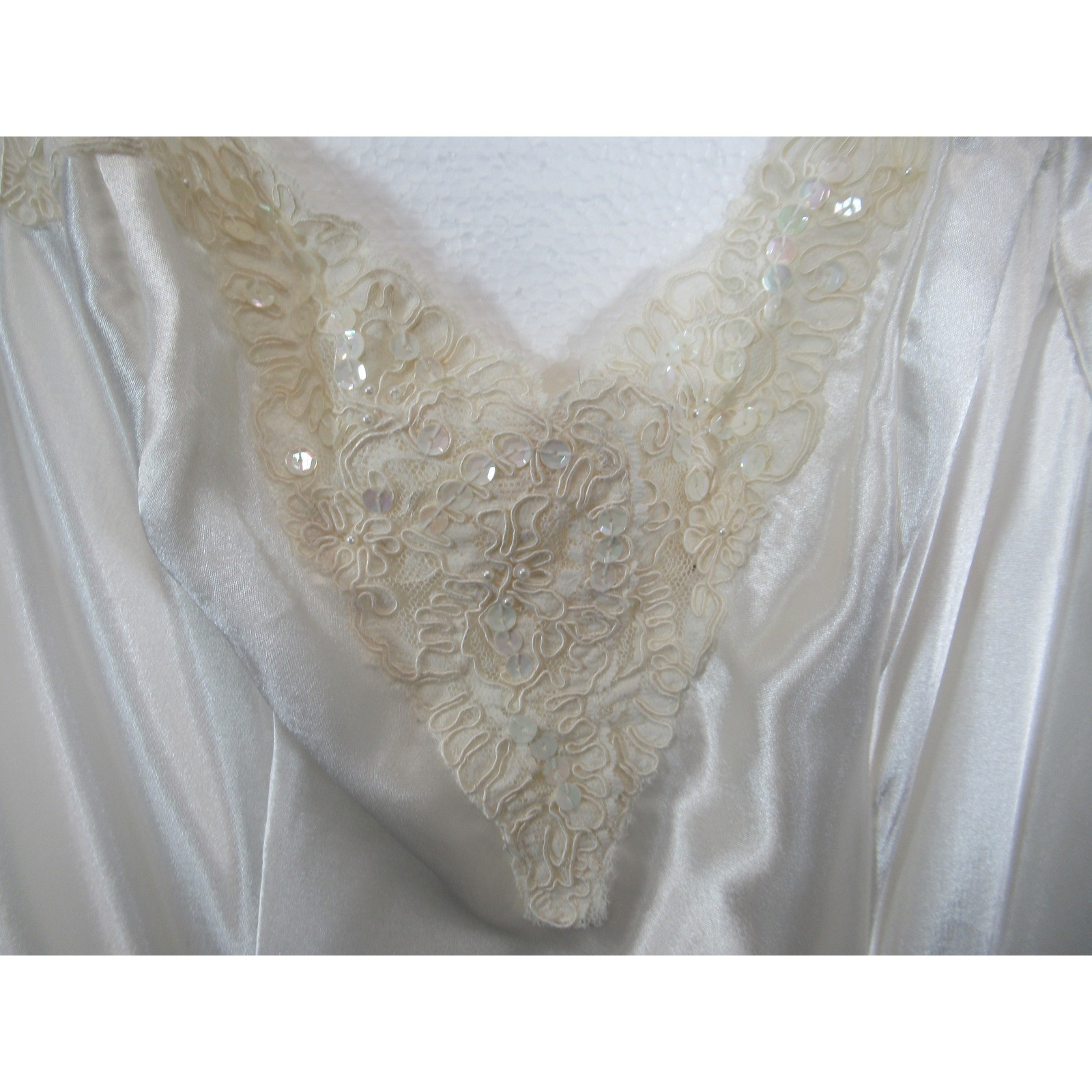 как выглядит Vintage 90s Victorias Secret Satin Babydoll Slip Chemise Women M Ivory Sequins фото