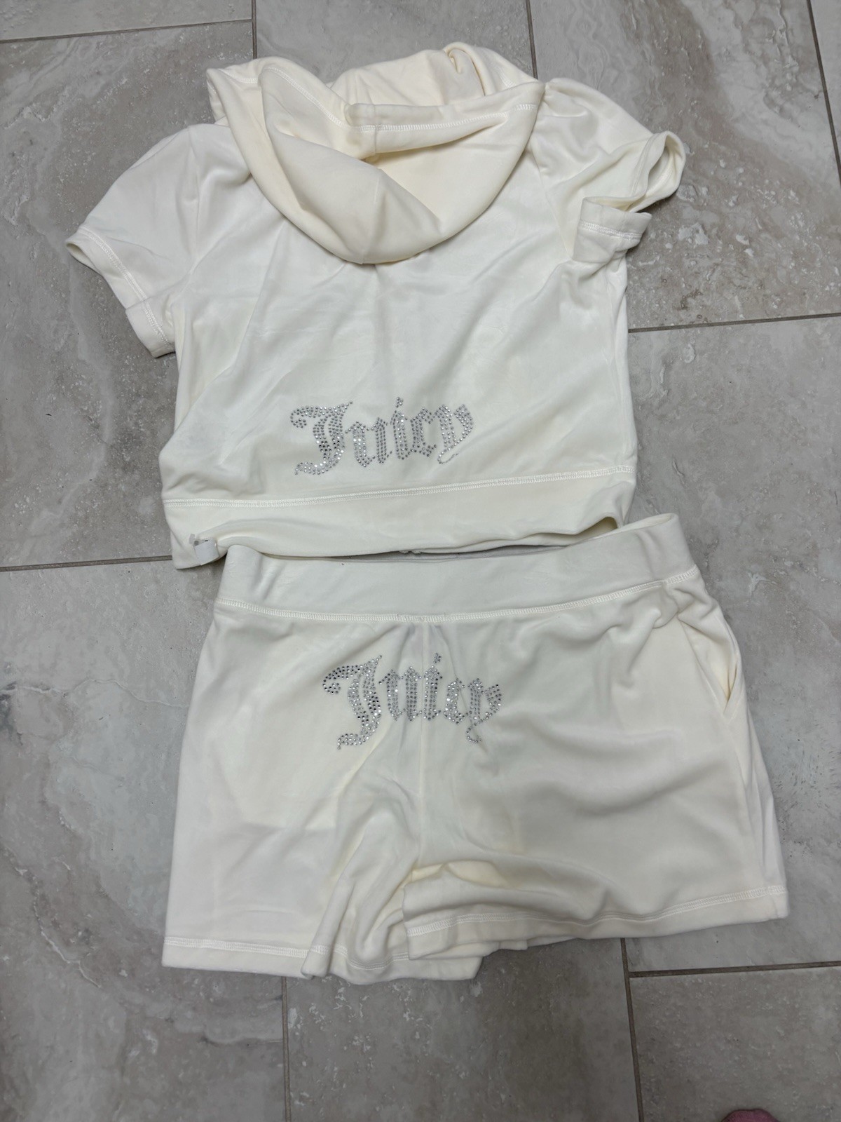 как выглядит NWT Juicy Couture Size XL OG Bling Velour Tracksuit Hoodie/Shorts Oyster фото