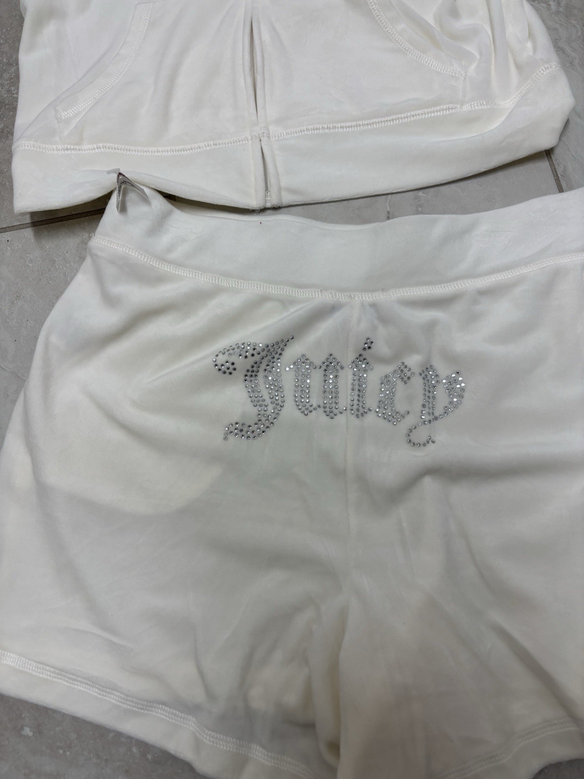 NWT Juicy Couture Size XL OG Bling Velour Tracksuit Hoodie/Shorts Oyster