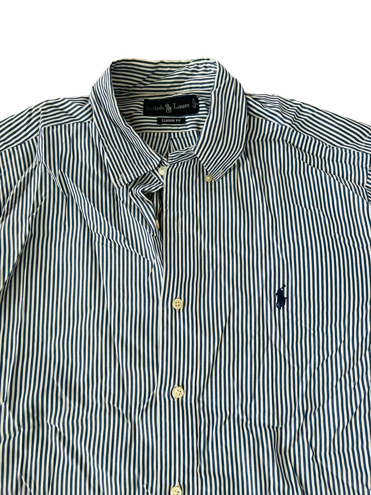 как выглядит Ralph Lauren Mens Button Front Dress Shirt 16 1/2 32/33 Blue White Striped фото
