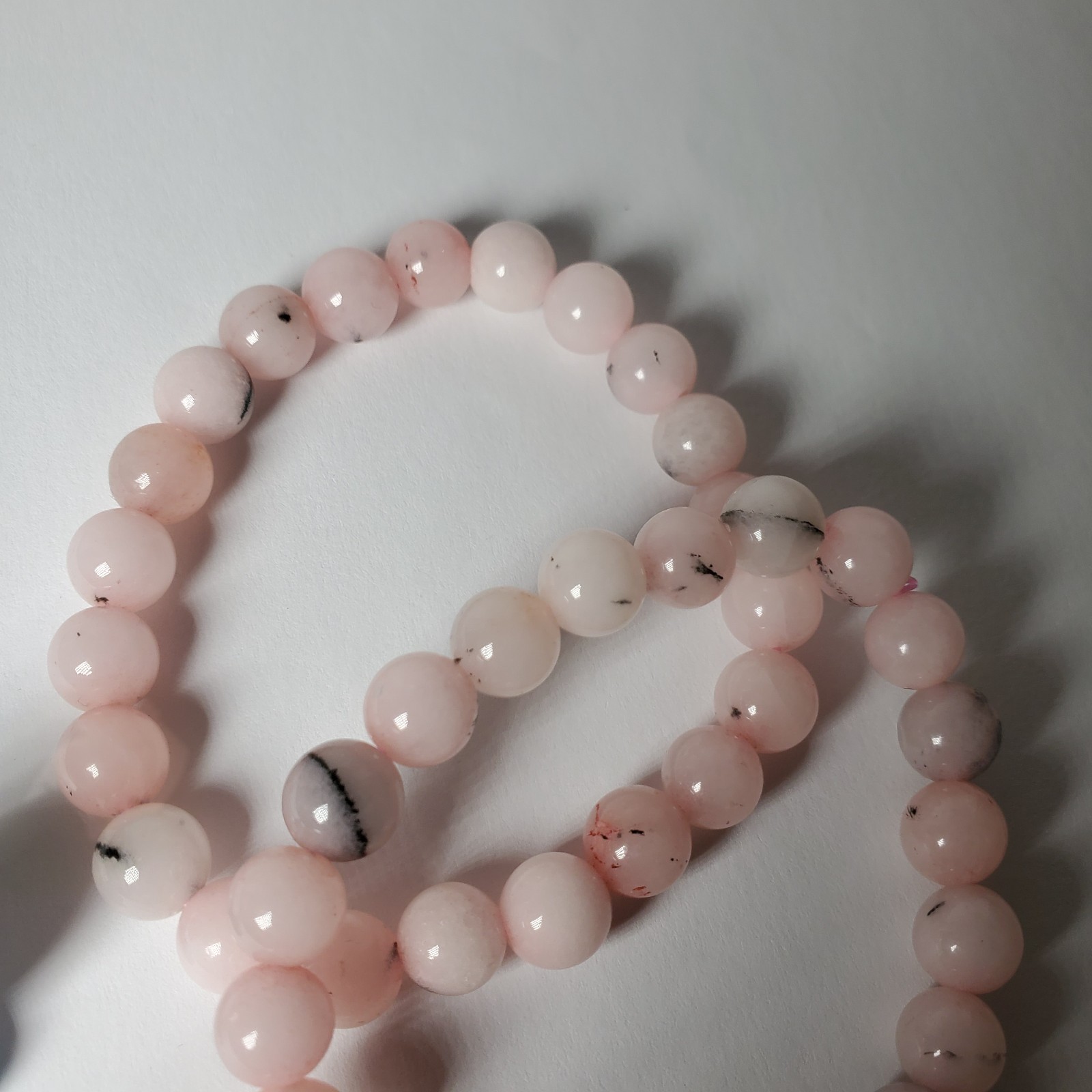 Pink Opal Crystal Bead Bracelet Set 2pc