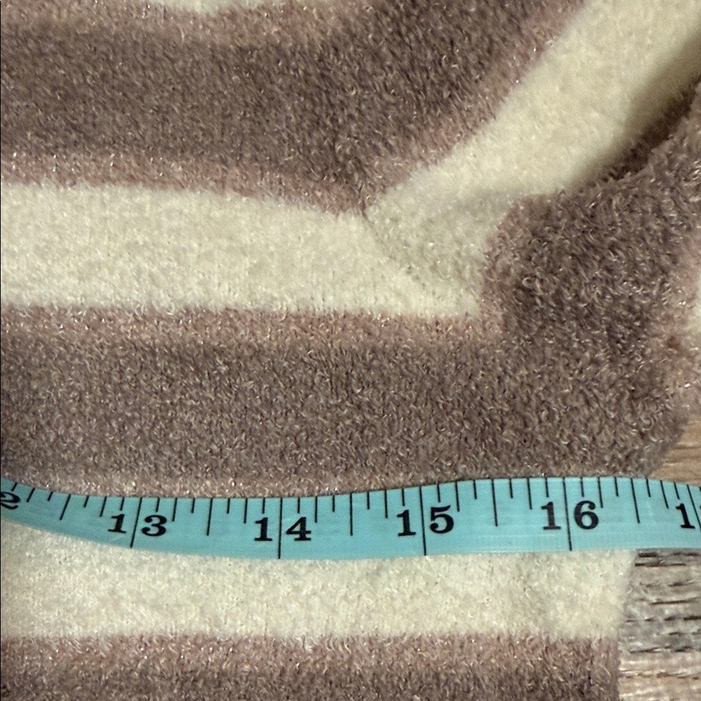 как выглядит Barefoot Dreams CozyChic Lite Taupe Striped L/S Pullover Sweater Women s XS фото