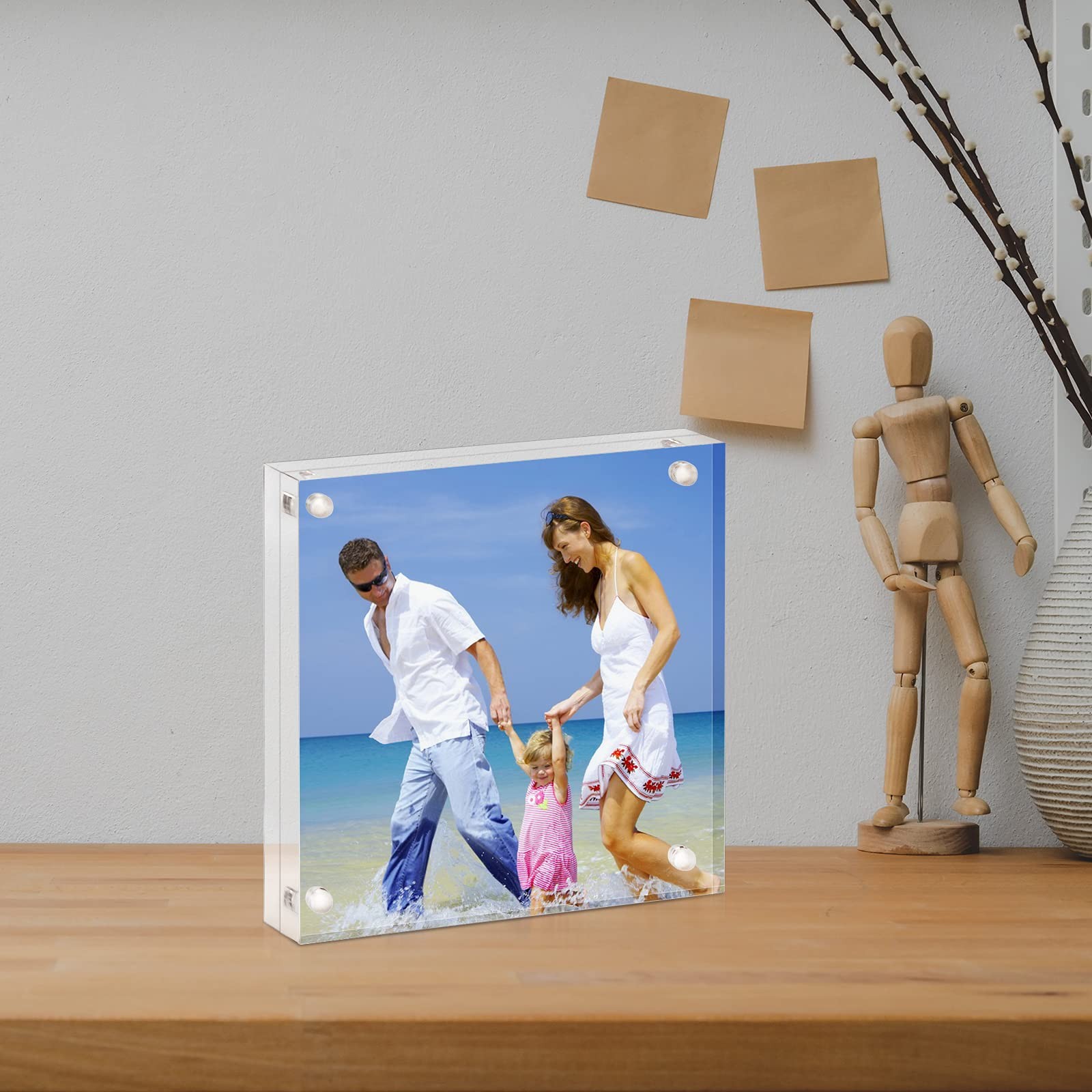 AMEITECH 4x4 Clear Double Sided Acrylic Photo Picture Frame Block