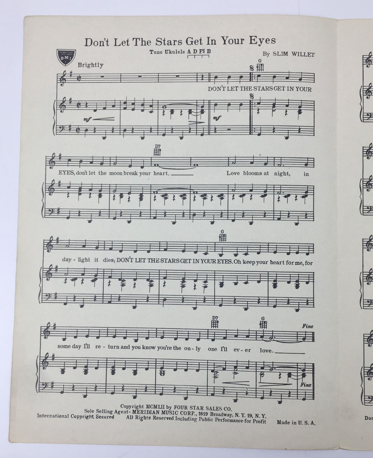 как выглядит Dont Let The Stars Get In Your Eyes Piano Ukulele Sheet Music Perry Como 1952 фото