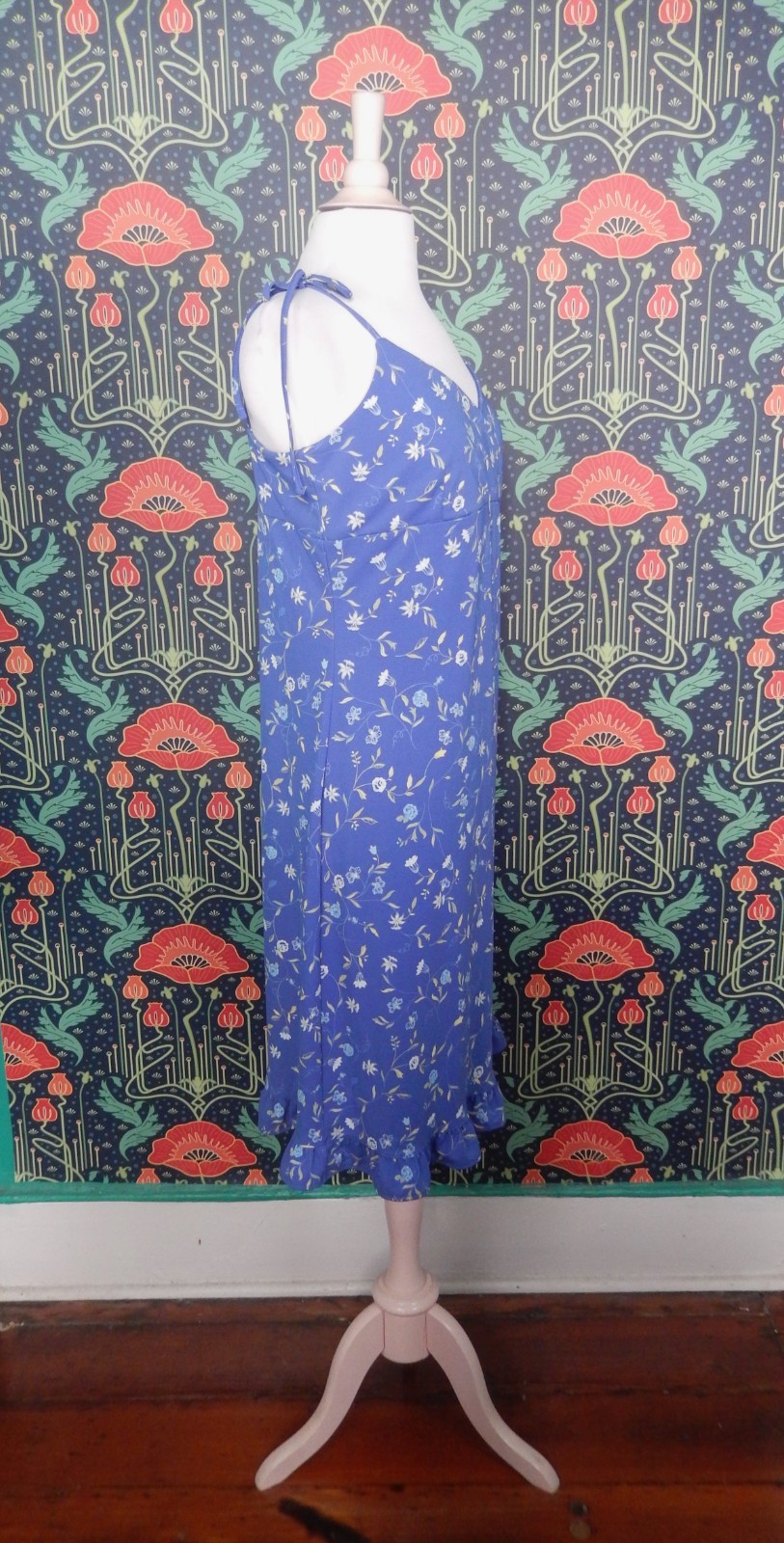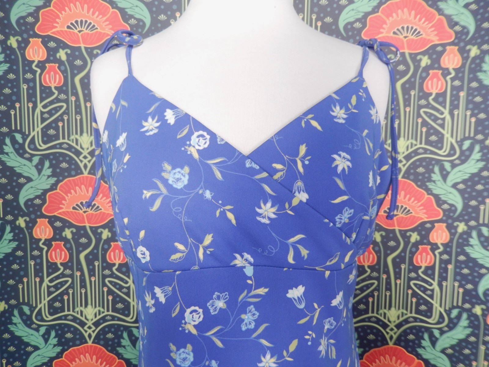 Vintage Y2K Blue Floral Empire Waist Slip Dress Flounce L/XL