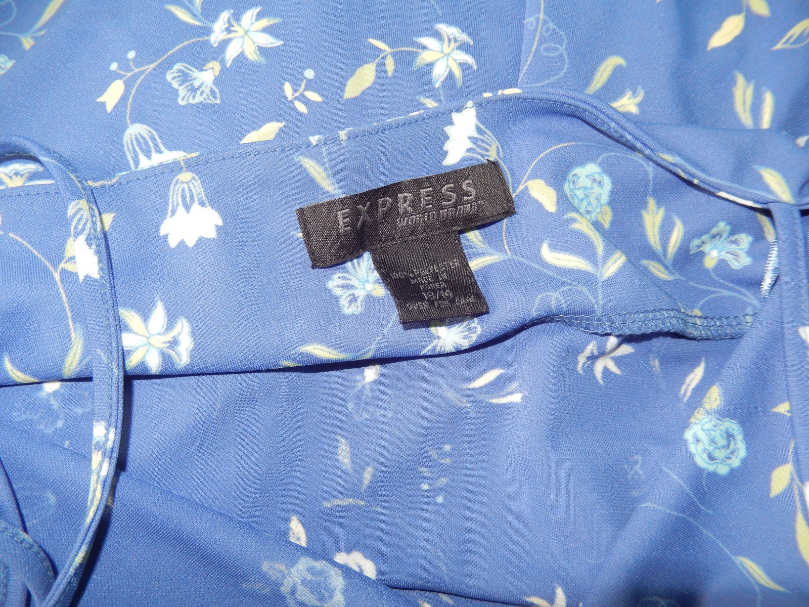 как выглядит Vintage Y2K Blue Floral Empire Waist Slip Dress Flounce L/XL фото