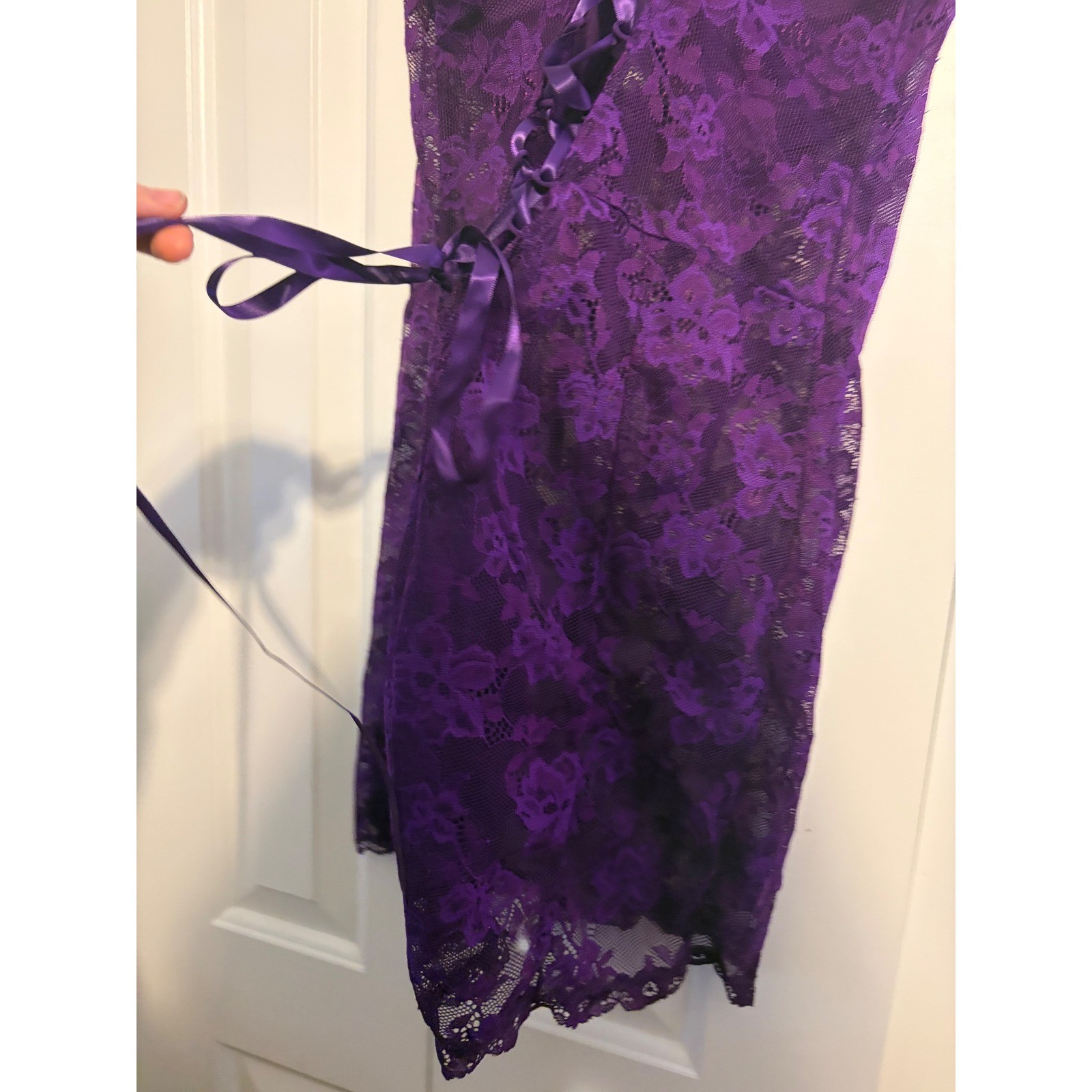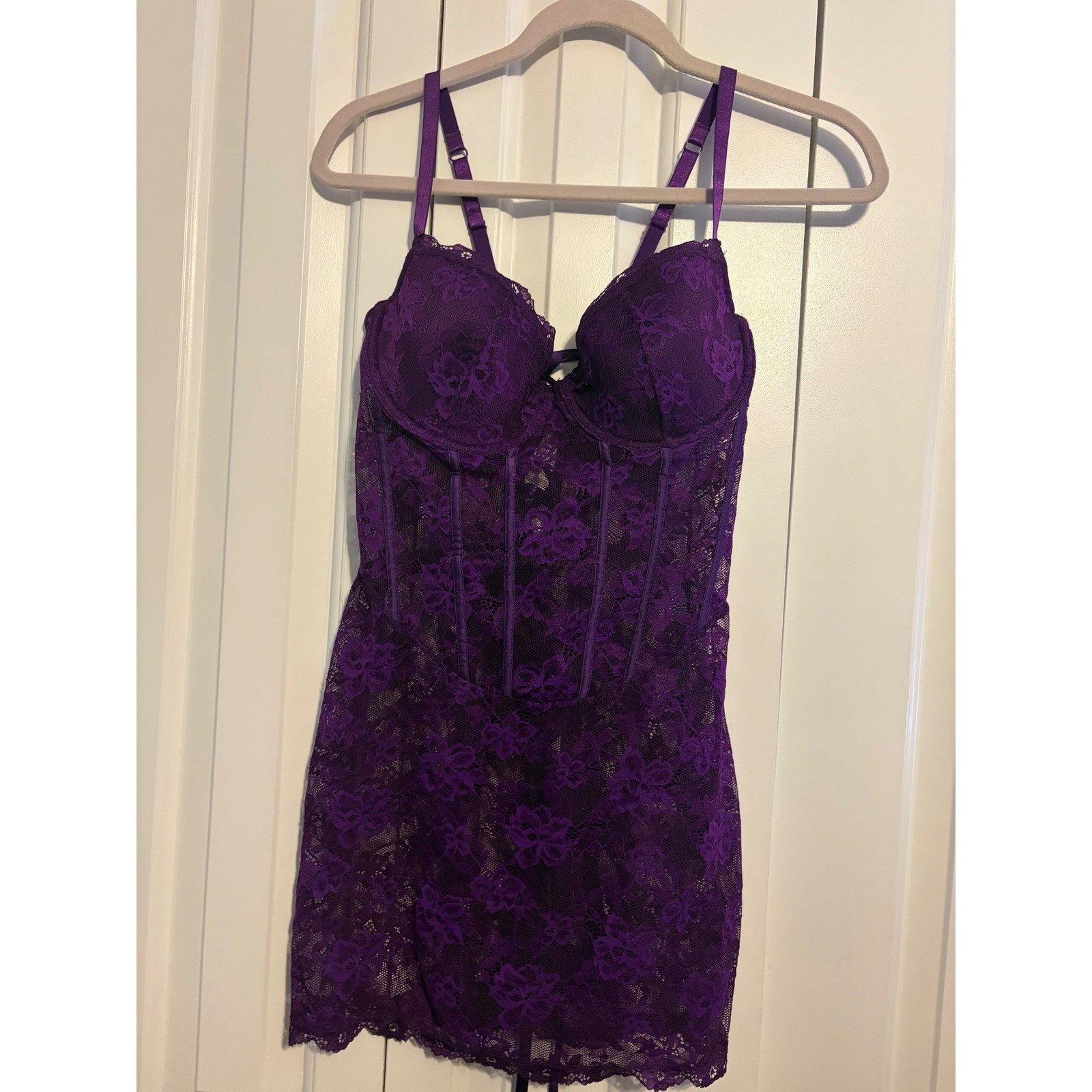 как выглядит Purple Lace Corset Babydoll Chemise Lingerie Adjustable Straps Ribbon Tie фото