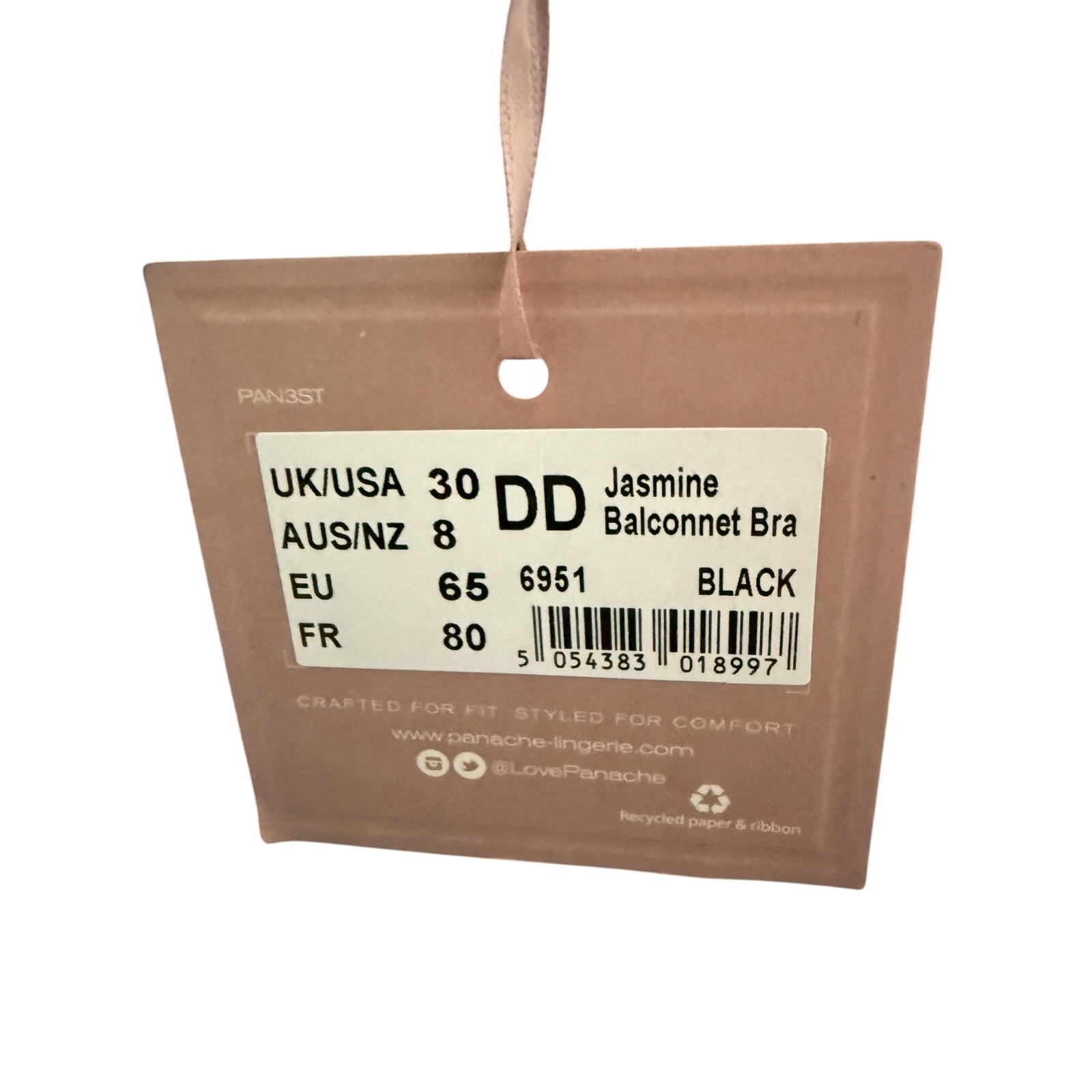 New Panache Jasmine 6951 Balconette Non-Padded Underwired Black Lace Bra 30DD