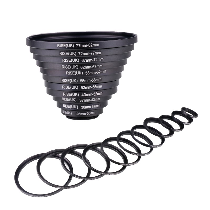 11pcs 26-30-37-43-52-55-58-62-67-72-77-82mm Step Up Filter Ring Lens Adapter Set