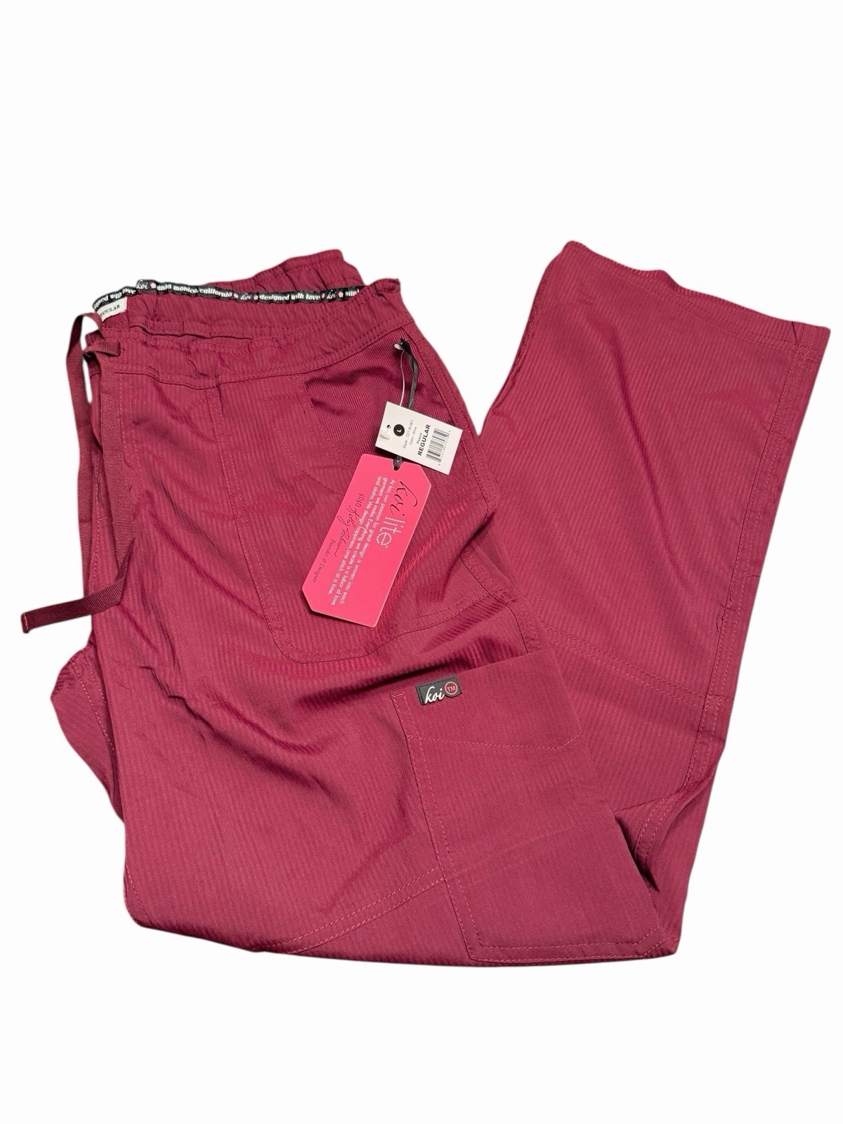 NWTS Koi Lite Peace Women s 6 Pocket Drawstring Pants Scrub SzLg /Wine
