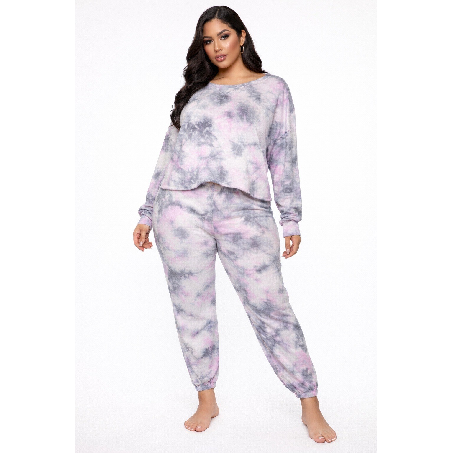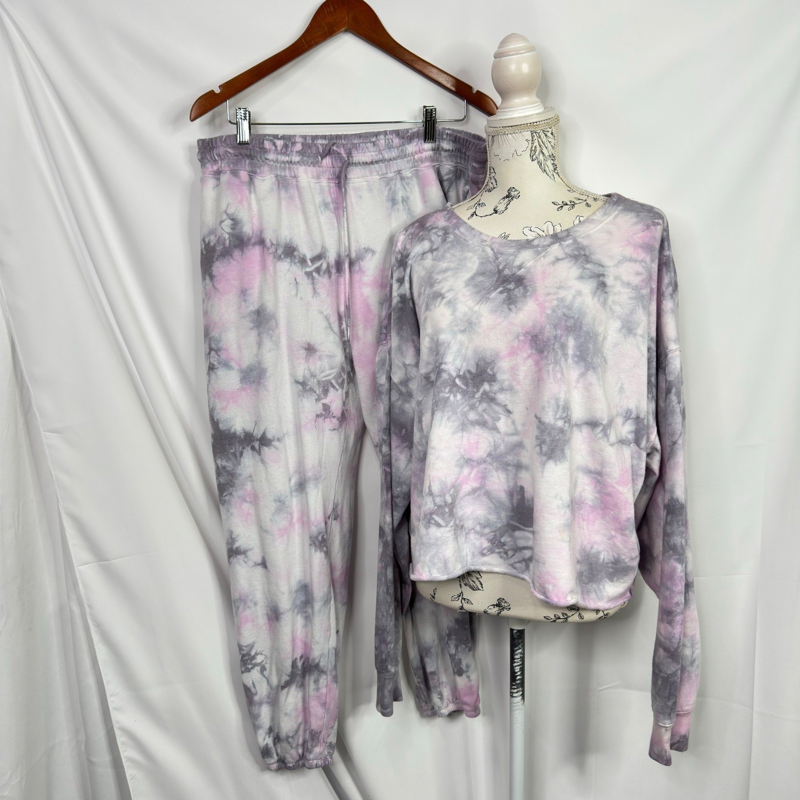Colsie Tie Dye Sweatshirt Jogger Set Pink Gray Purple Womens XL