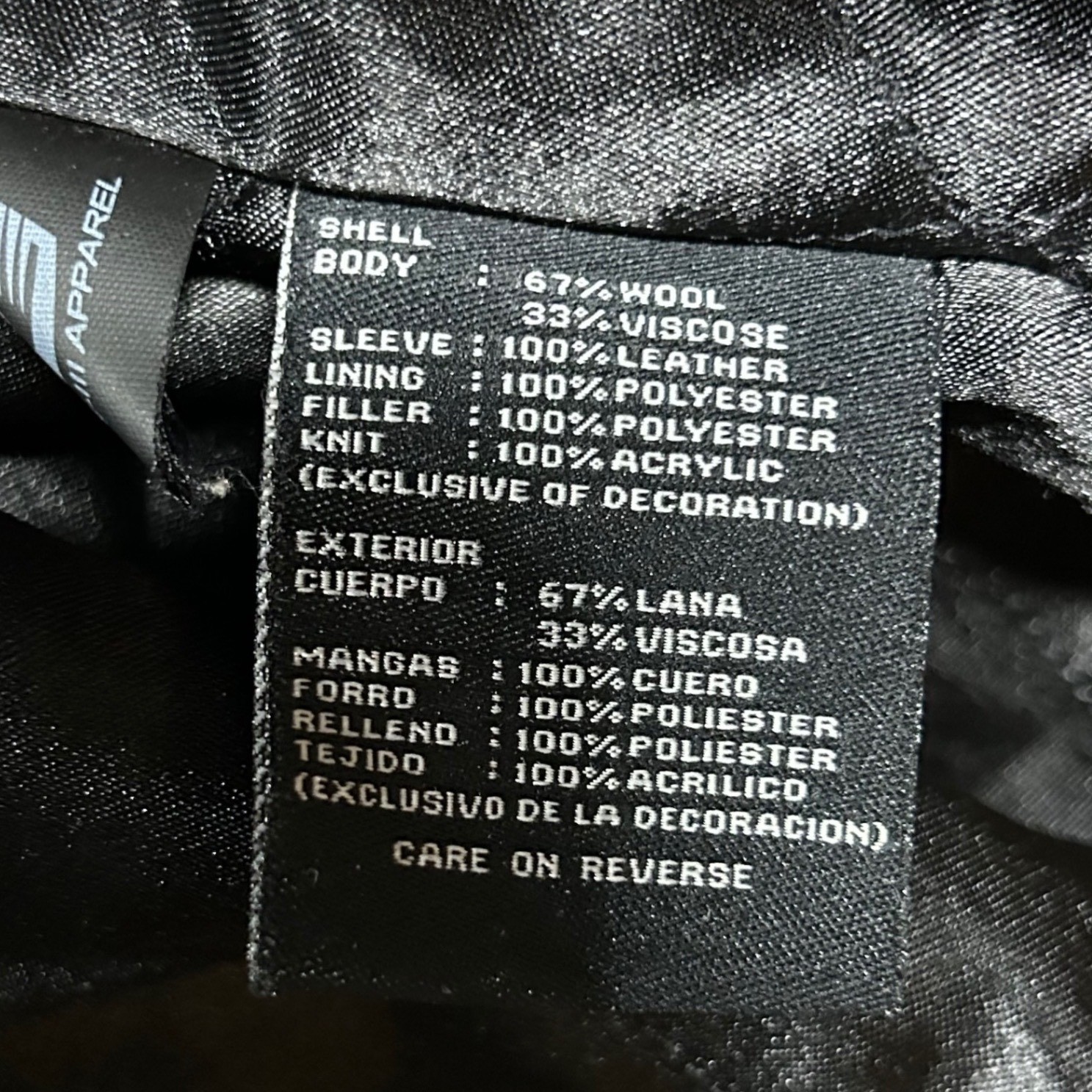 Garment Care: Care on reverse