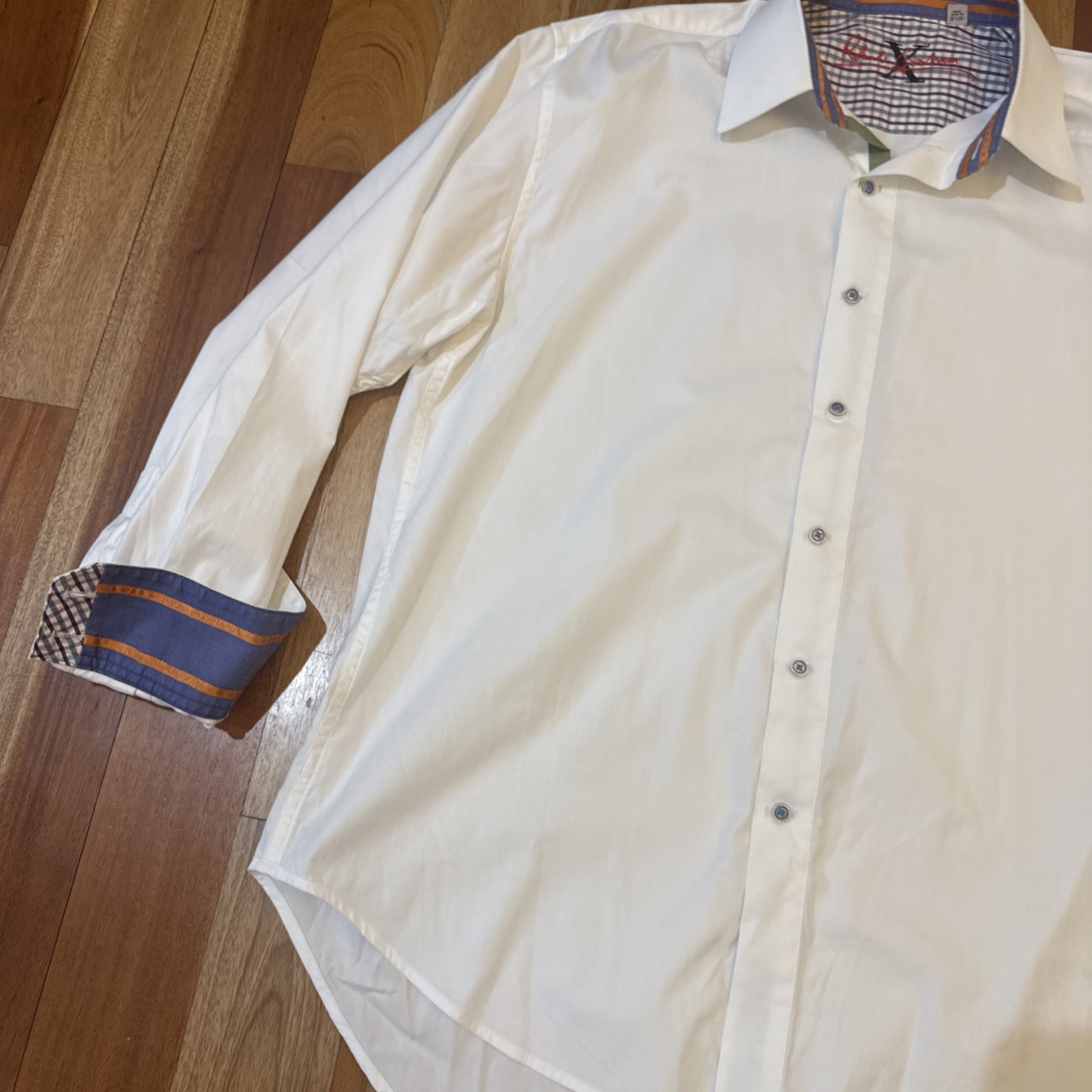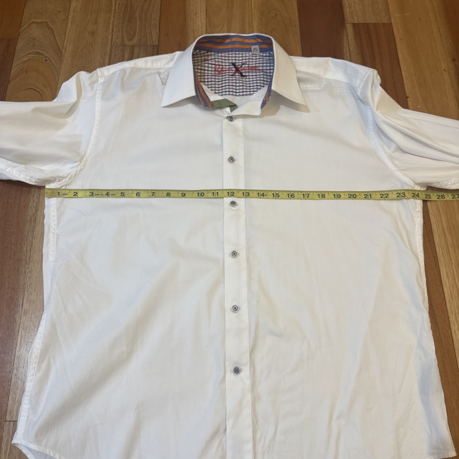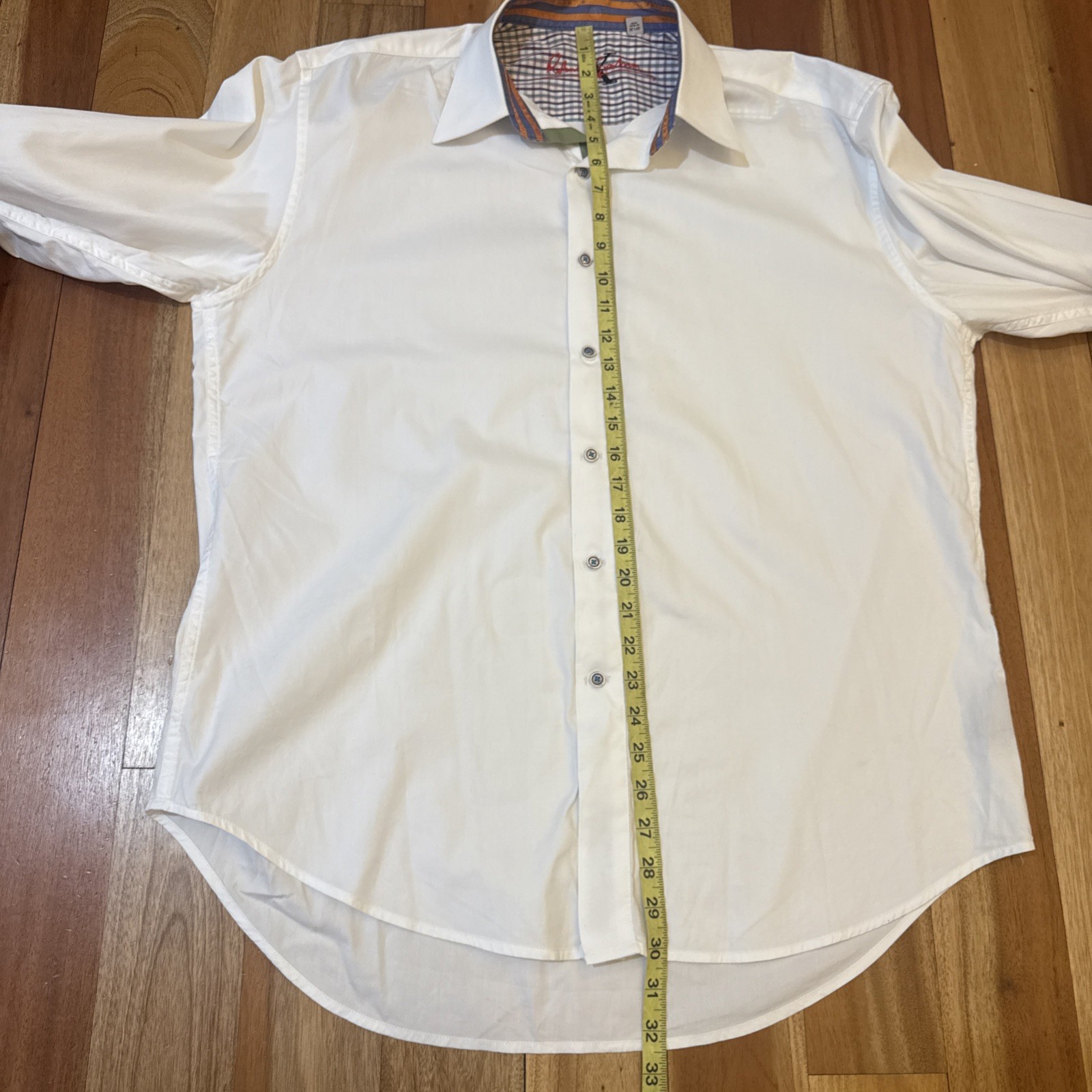 как выглядит Robert Graham Flip Cuff Shirt Mens XL Classic Fit White Woven Stripe Pattern фото