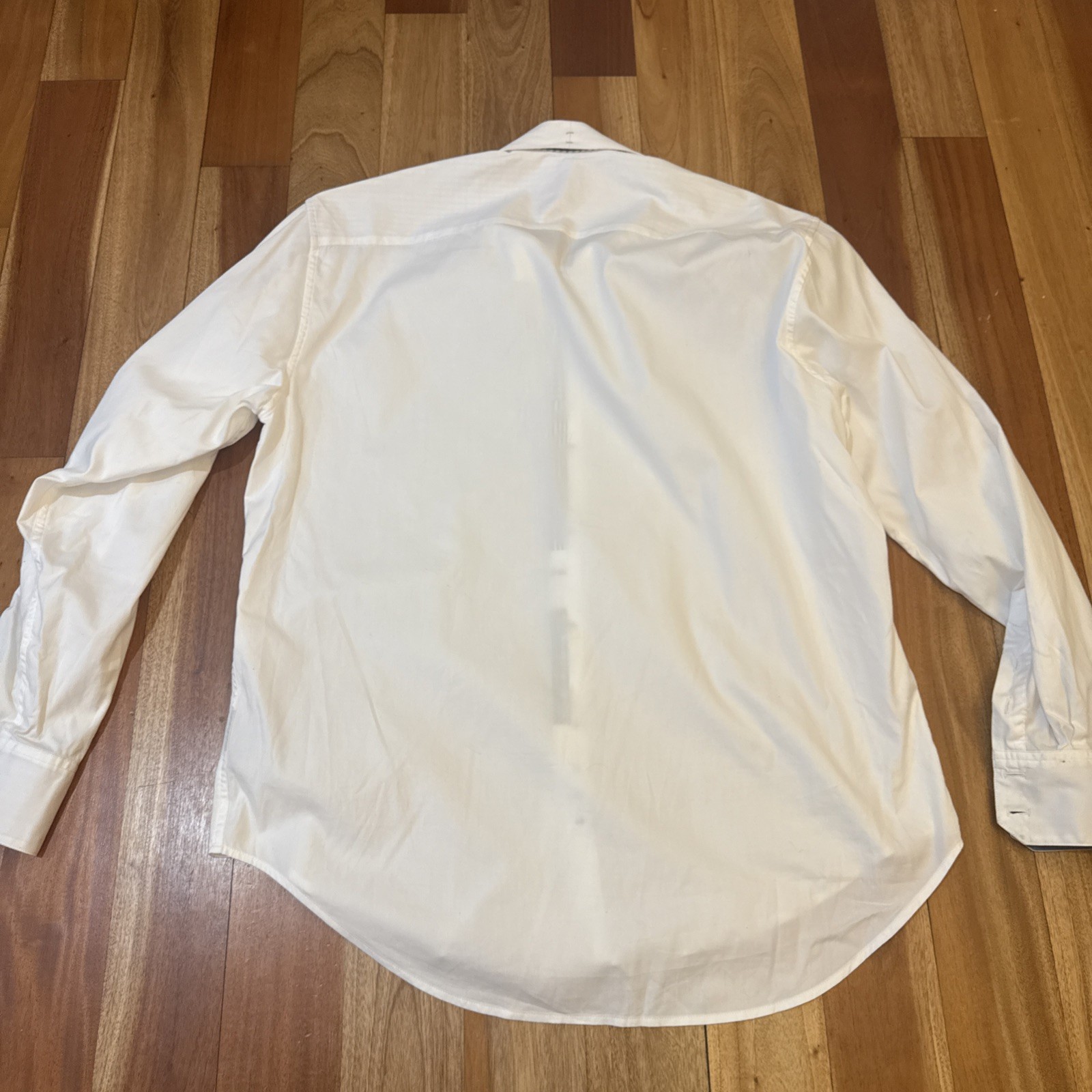 Robert Graham Flip Cuff Shirt Men's XL Classic Fit White Woven Stripe Pattern