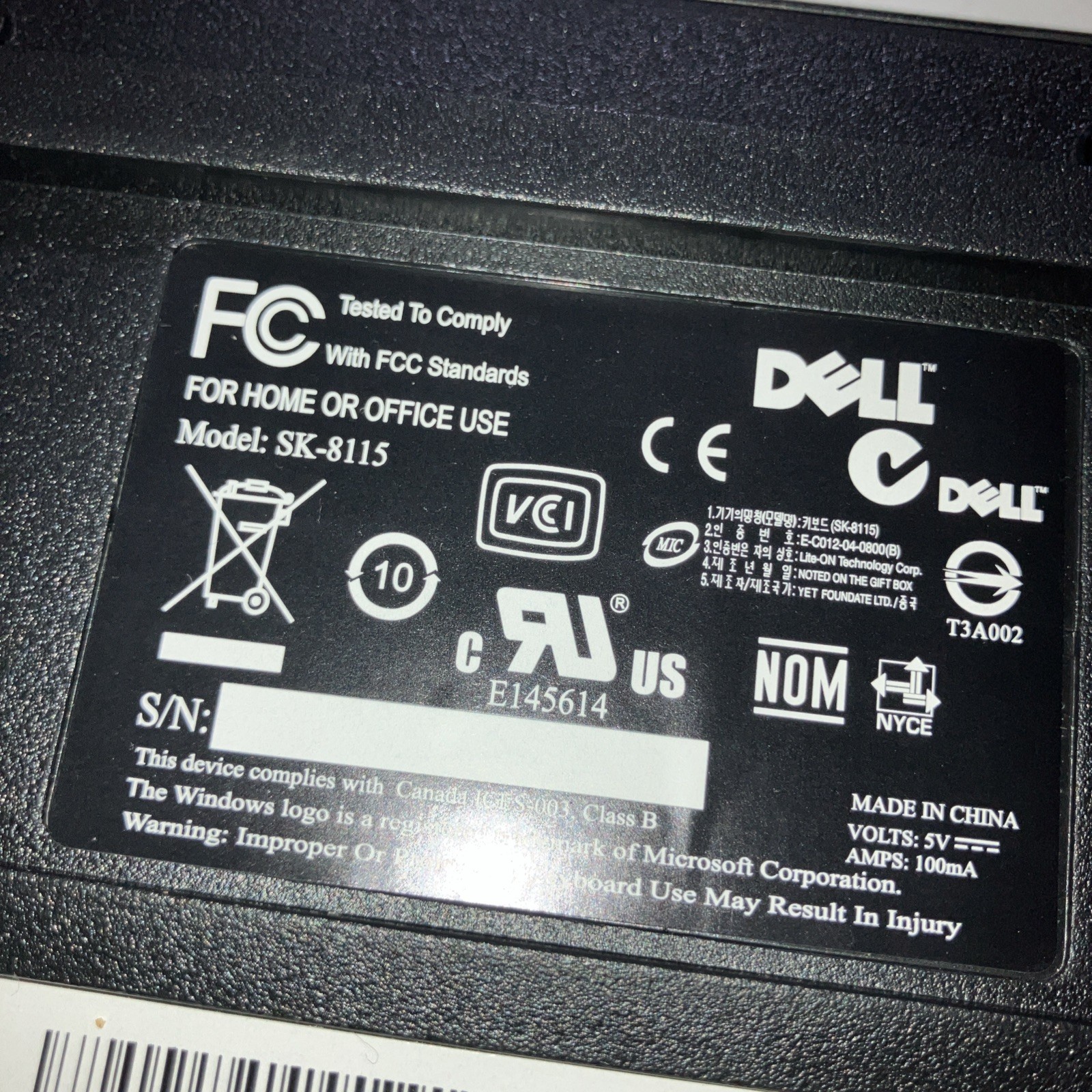 DELL SK-8115 USB Keyboard With Mouse Black color, Used