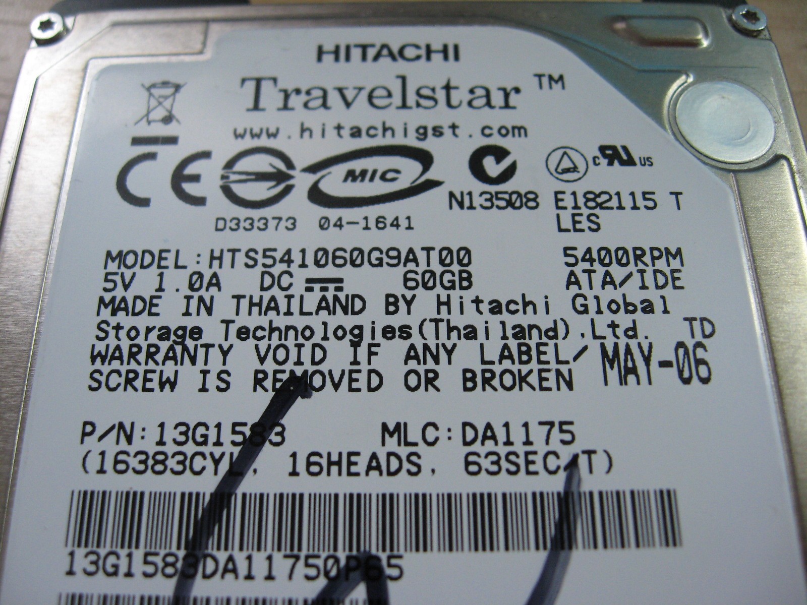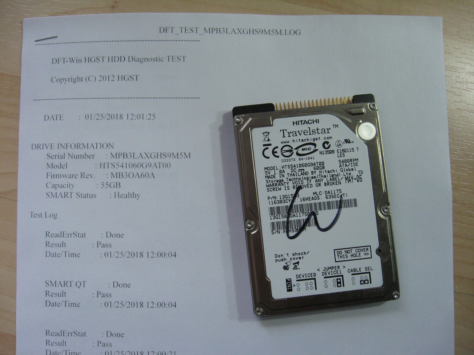 как выглядит Hitachi HTS541060G9AT00 60GB 2.5" IDE Hard Drive WinDFT Tested w/ Log C101CK фото