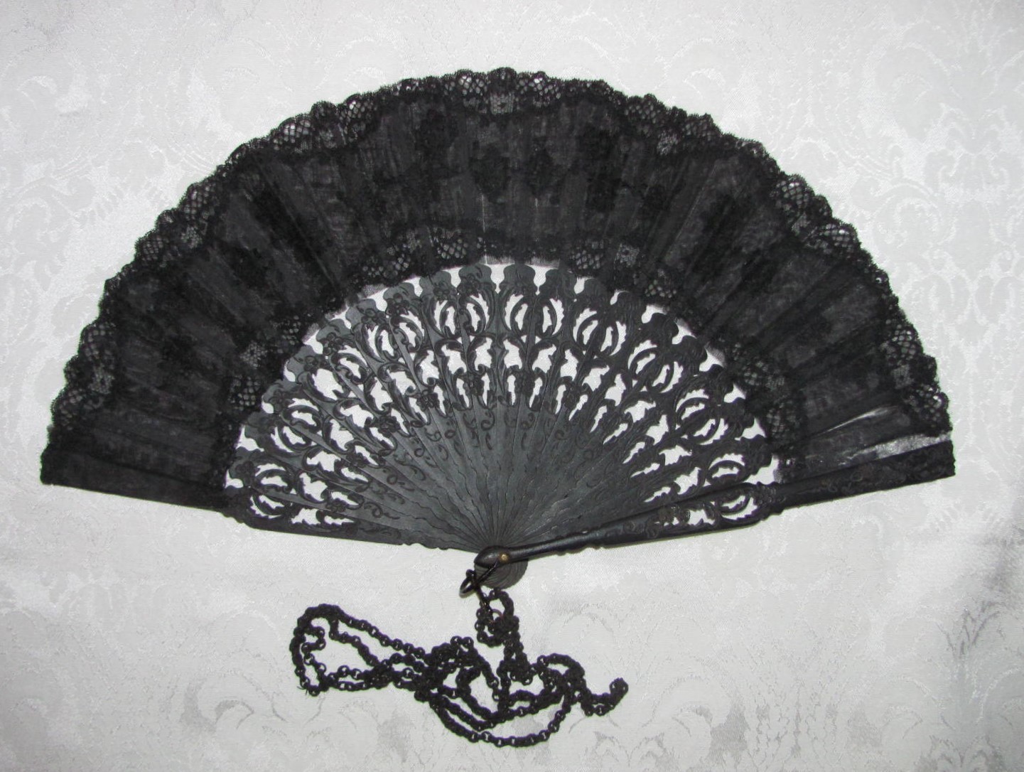 Antique Victorian Hand Fan with Black Lace Circa 1865
