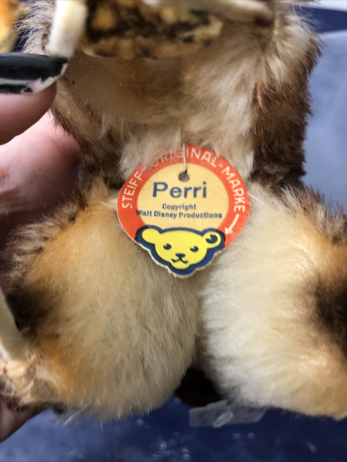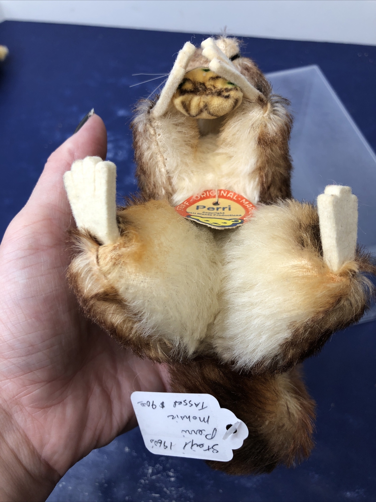 5.5 Vintage Steiff 1960 s Perri Brown Squirrel Mohair Tagged Plush Si