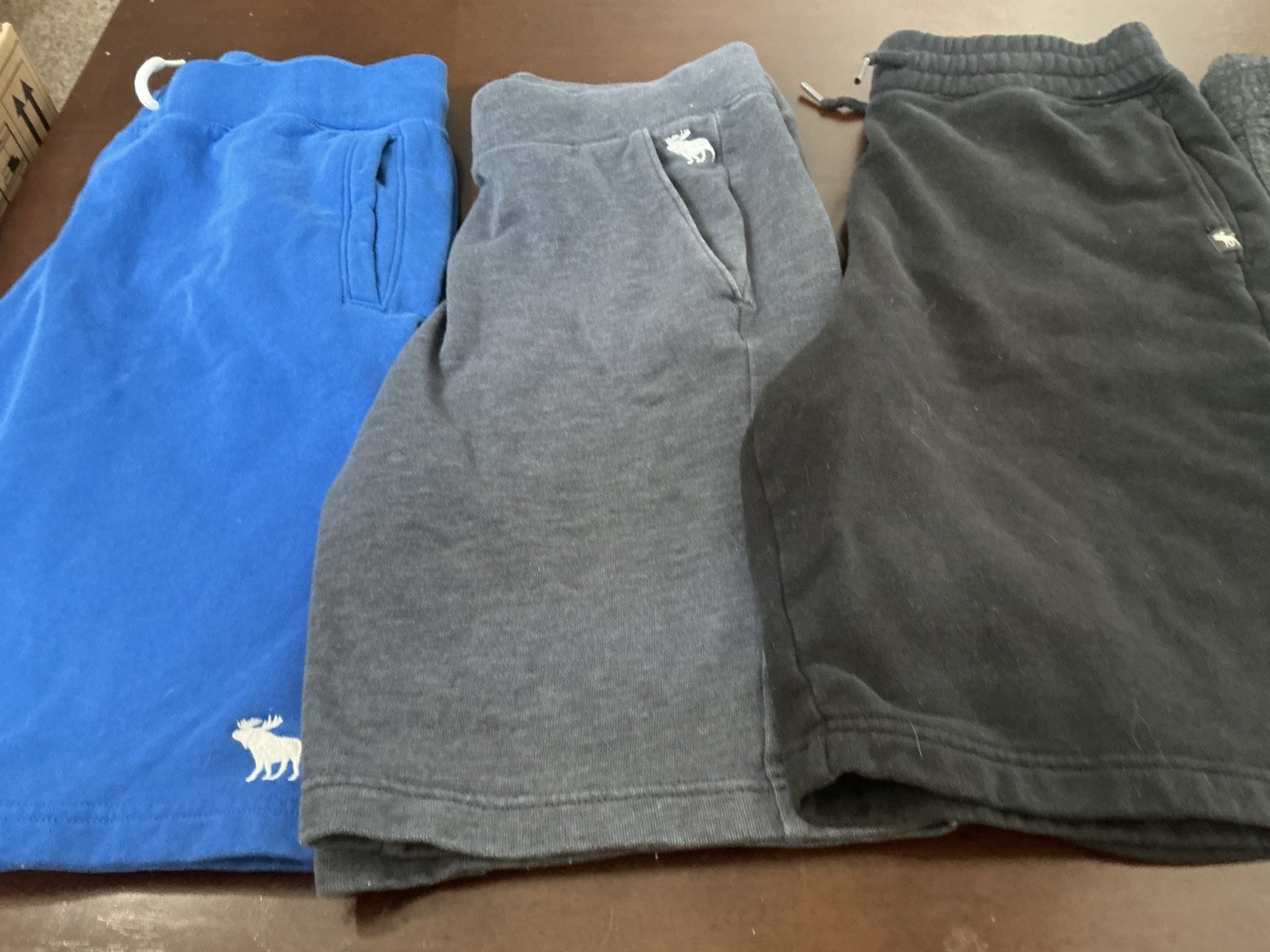 как выглядит Lot 4 Abercrombie Kids Blue Gray Black Pull Up Sweat Shorts Boys Size 15/16 EUC фото