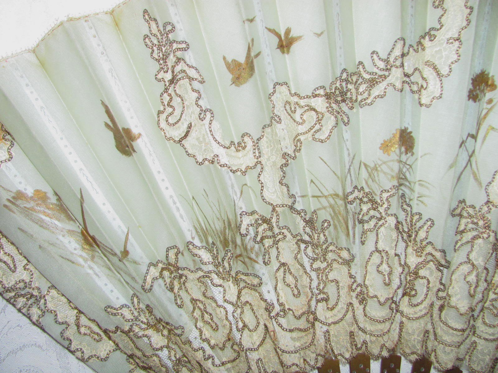 как выглядит Large Antique Victorian Fan Hand Painted Silk and Lace 1890s фото