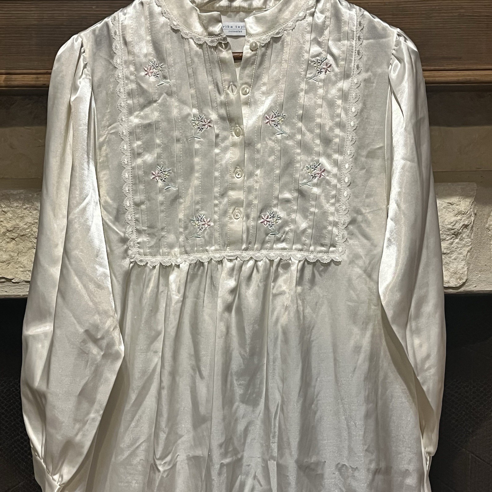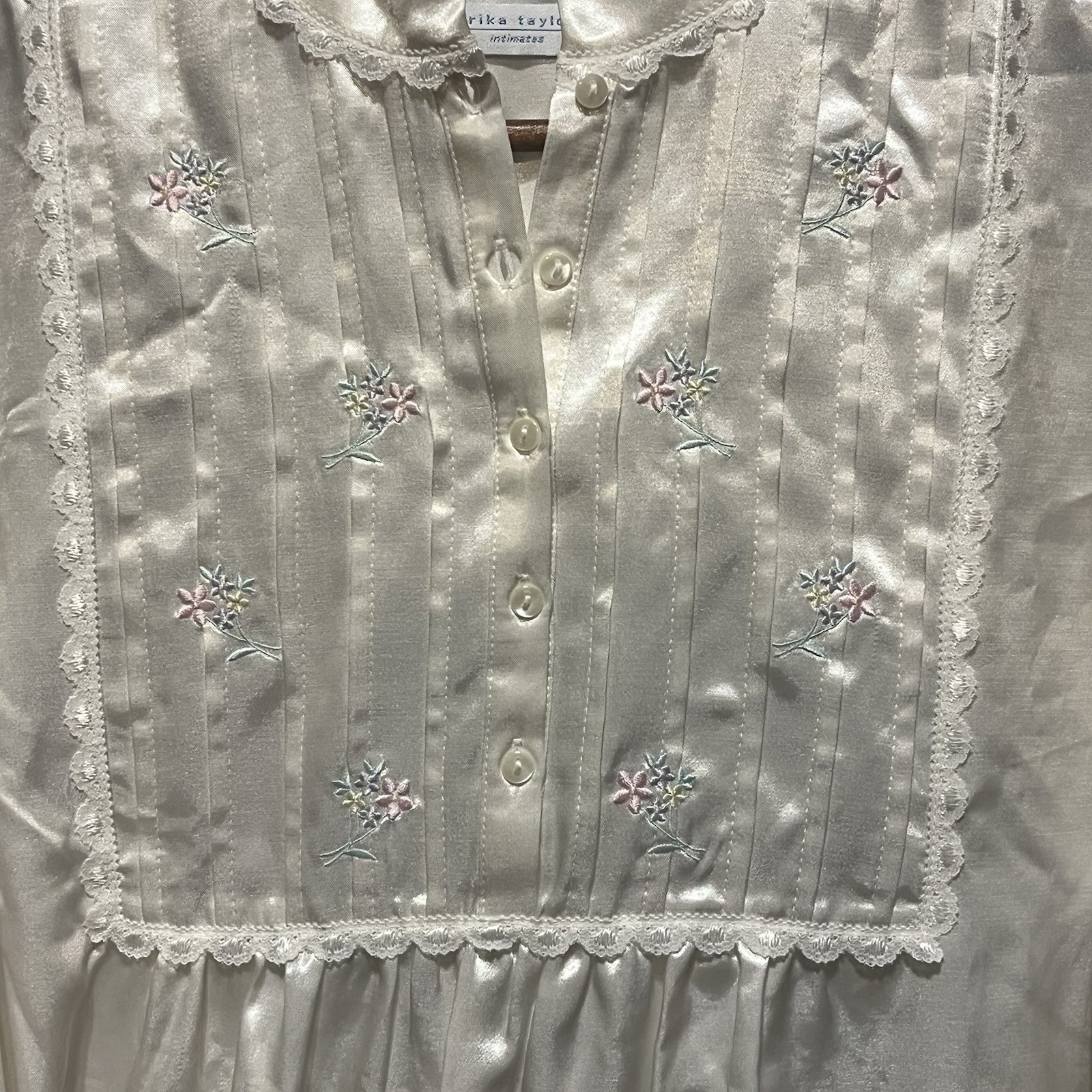 как выглядит Erika Taylor Vintage Embroidered Lace Satin Long Nightgown Size S фото