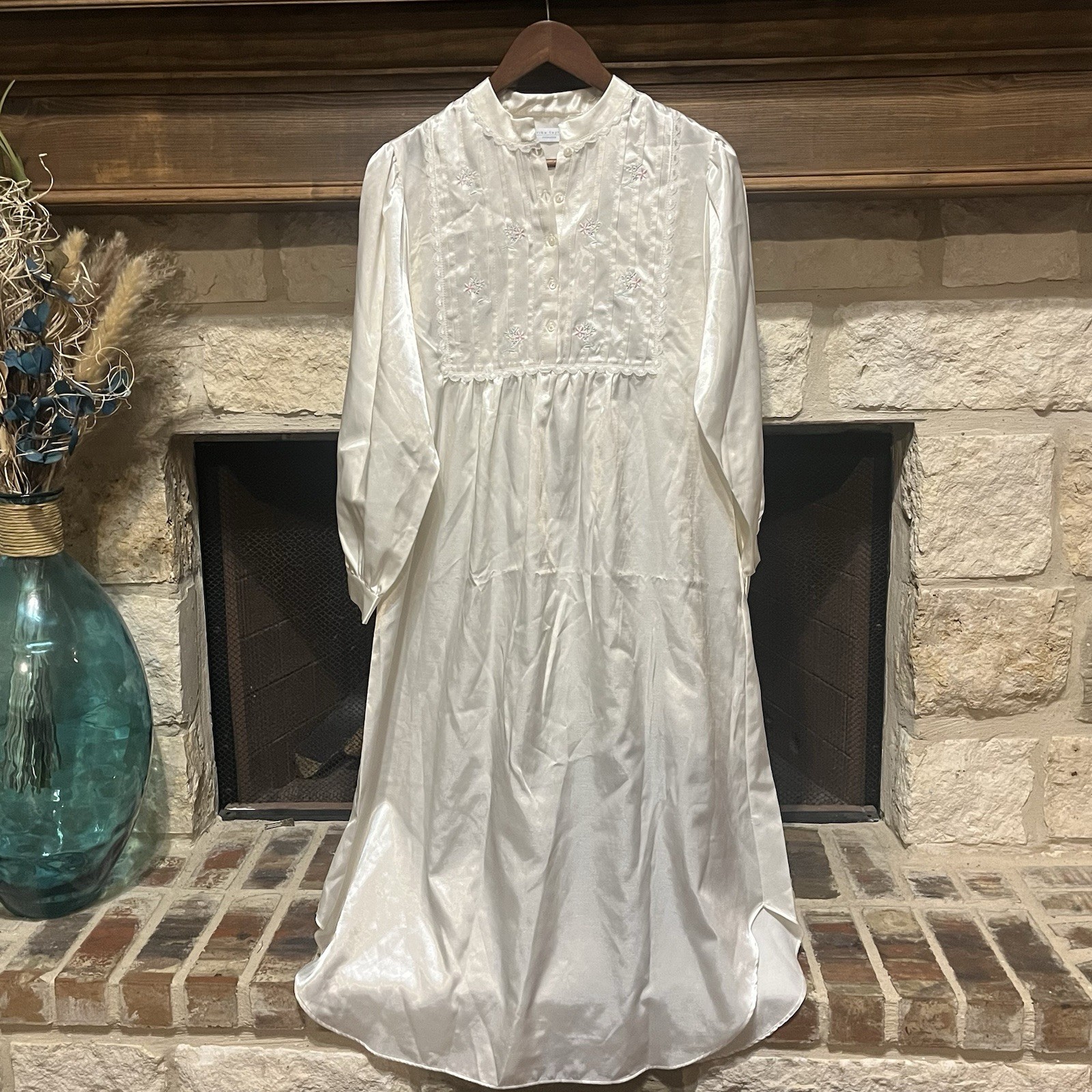 Erika Taylor Vintage Embroidered Lace Satin Long Nightgown Size S