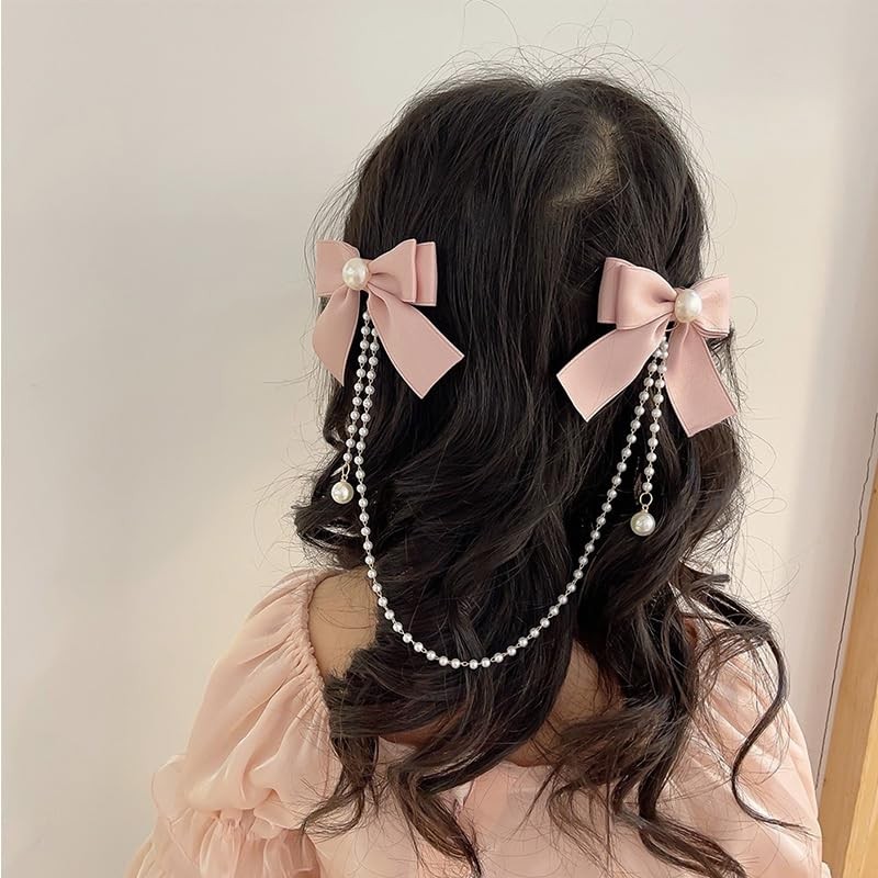 Pearl Bowknot Hair Accessories - Hair Clips, Barrettes, and Chains for Toddlers,